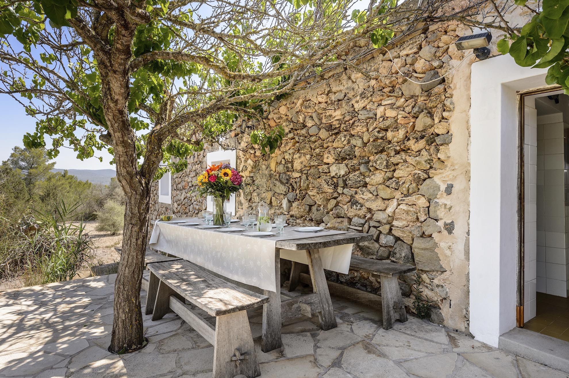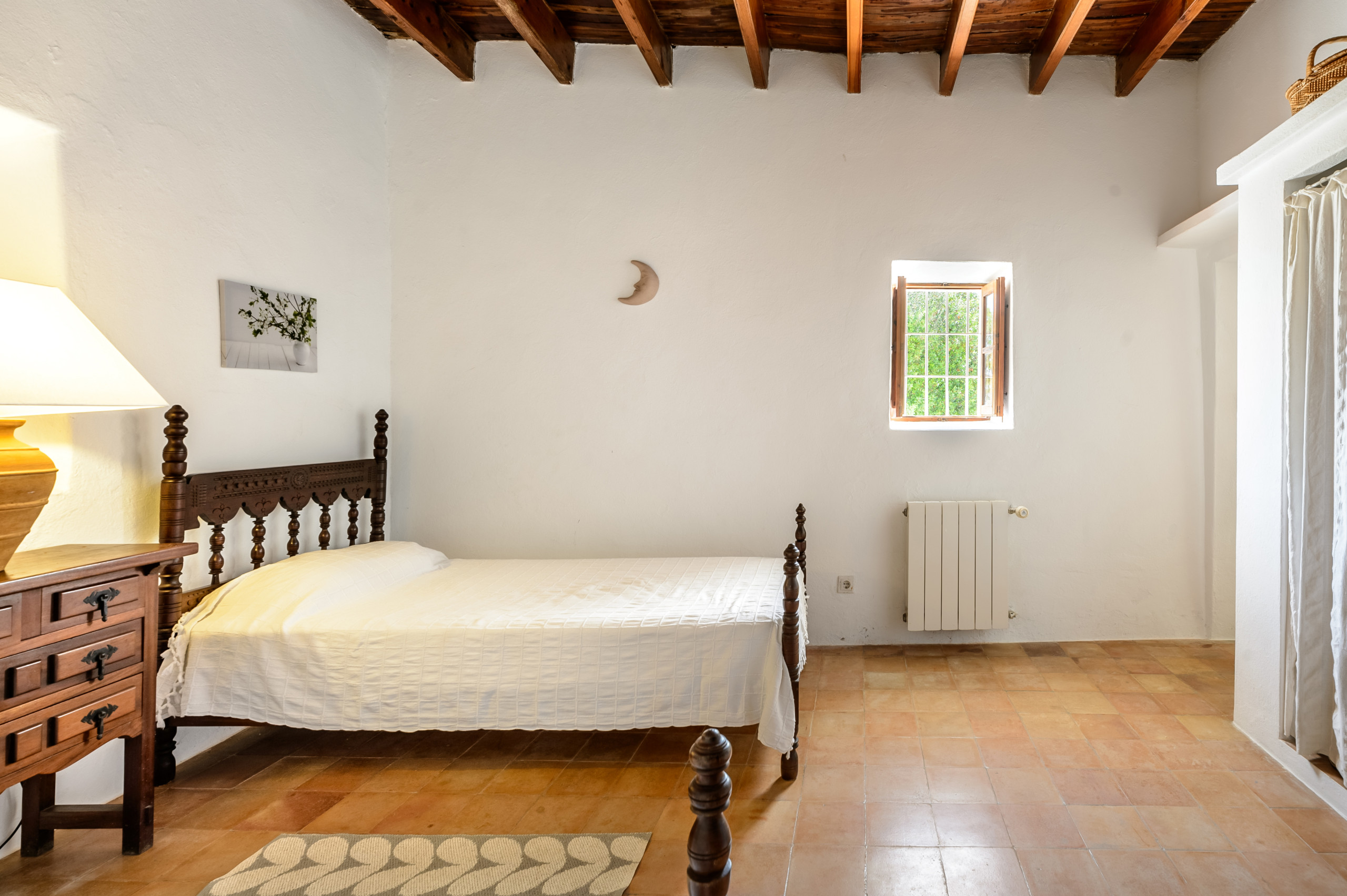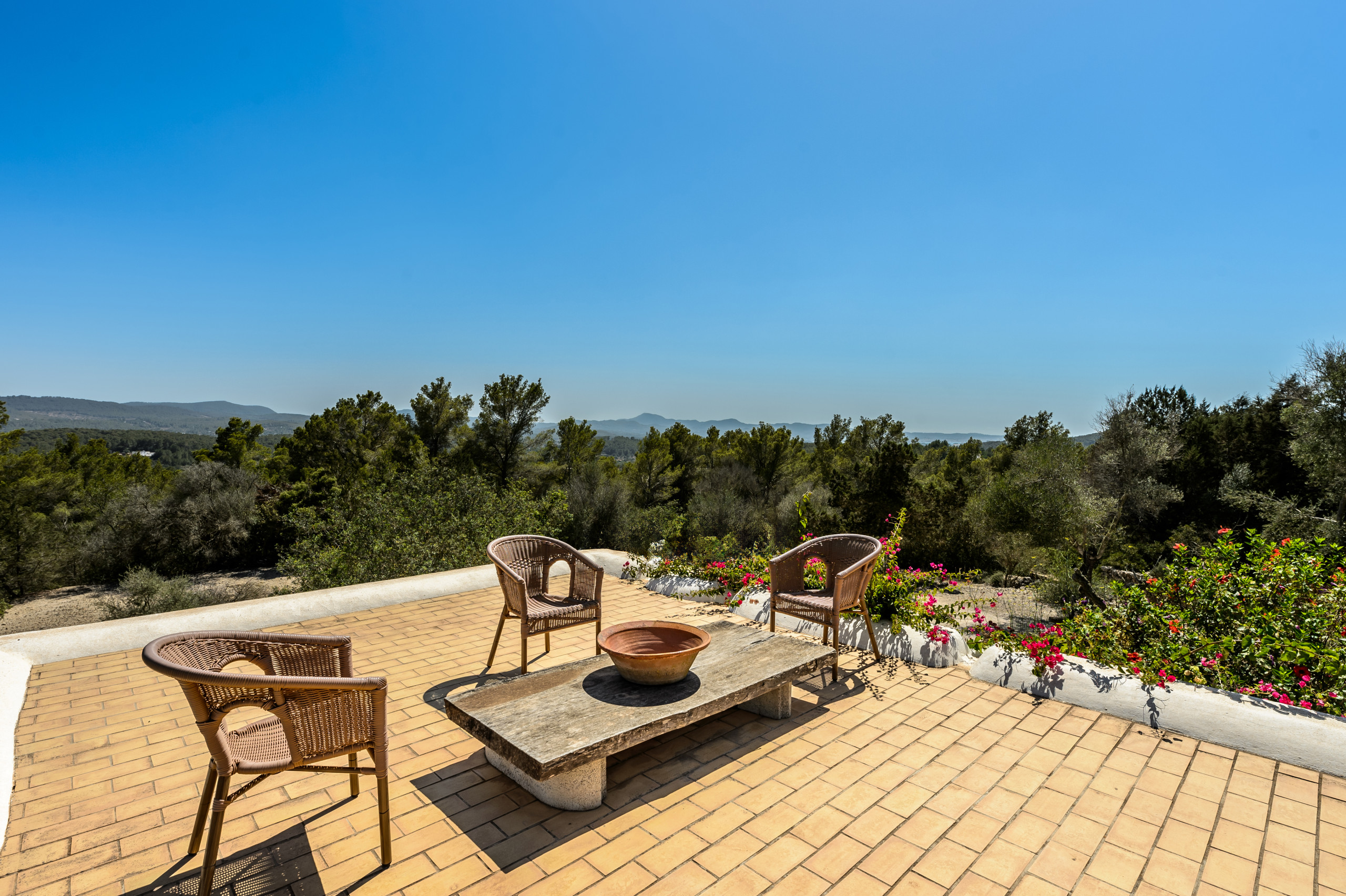 Can Felix ist ein charmanter traditioneller iberischer Bauernhof mit insgesamt 5 Schlafzimmern und Platz für 11 Personen in einer ländlichen Zone von 21 Hektaren, umgeben von Kiefern, Heimat von Turteltauben und Steinwachholen. Dieser wunderschöne Bauernhof befindet sich in der Nähe des kleinen Dorfes Forada, nur 5,8 km von San Rafael, 6,6 km von San Antonio, 8,2 km von Santa Gertrudis und 12,1 km von der Stadt Ibiza entfernt. Das Dorf Forada bietet eine Bar, ein Restaurant, eine Kirche, einen Laden und eine Kunstgalerie. Das Haus wird mit Solar- und Windenergie betrieben, mit einem Notstromgenerator für zusätzliche Zuverlässigkeit.