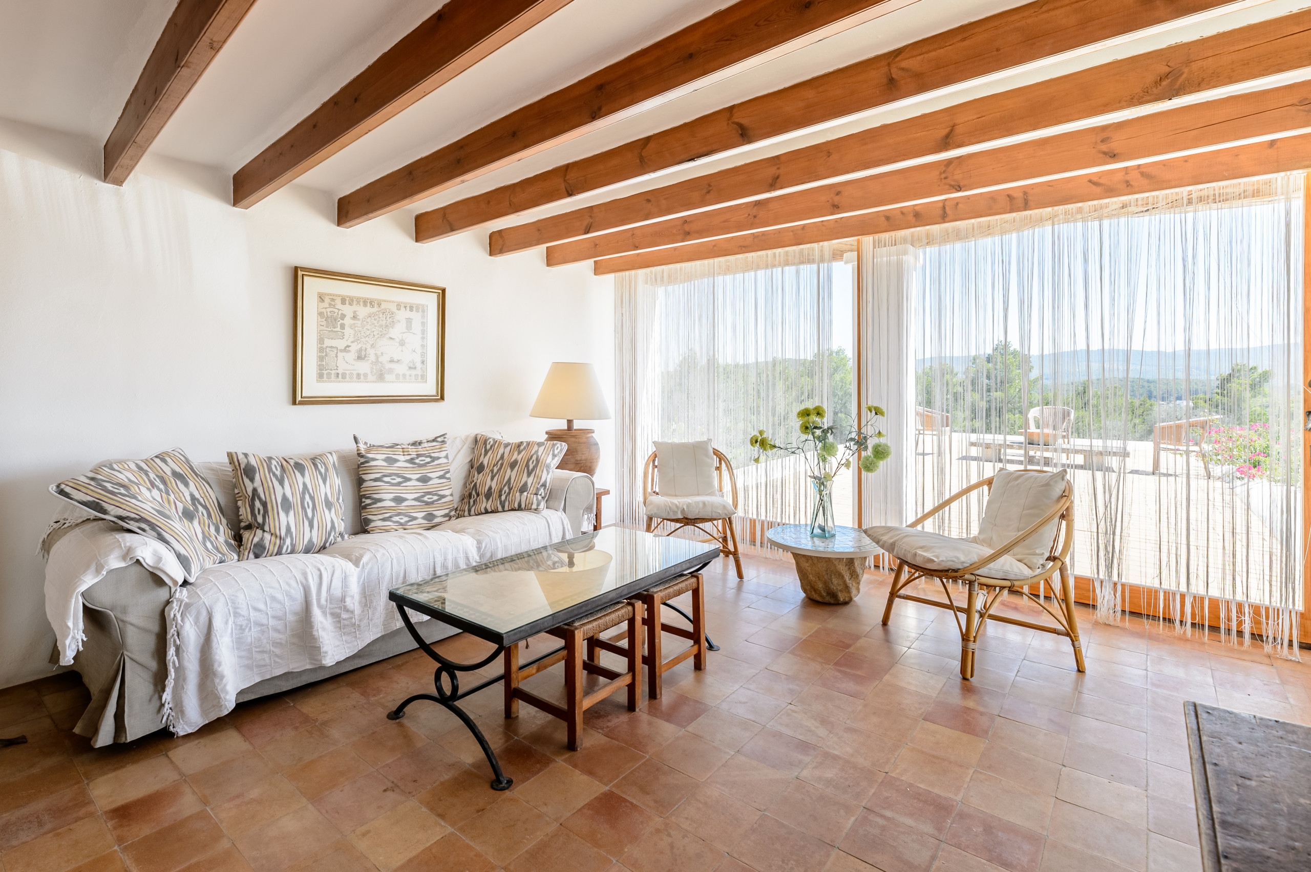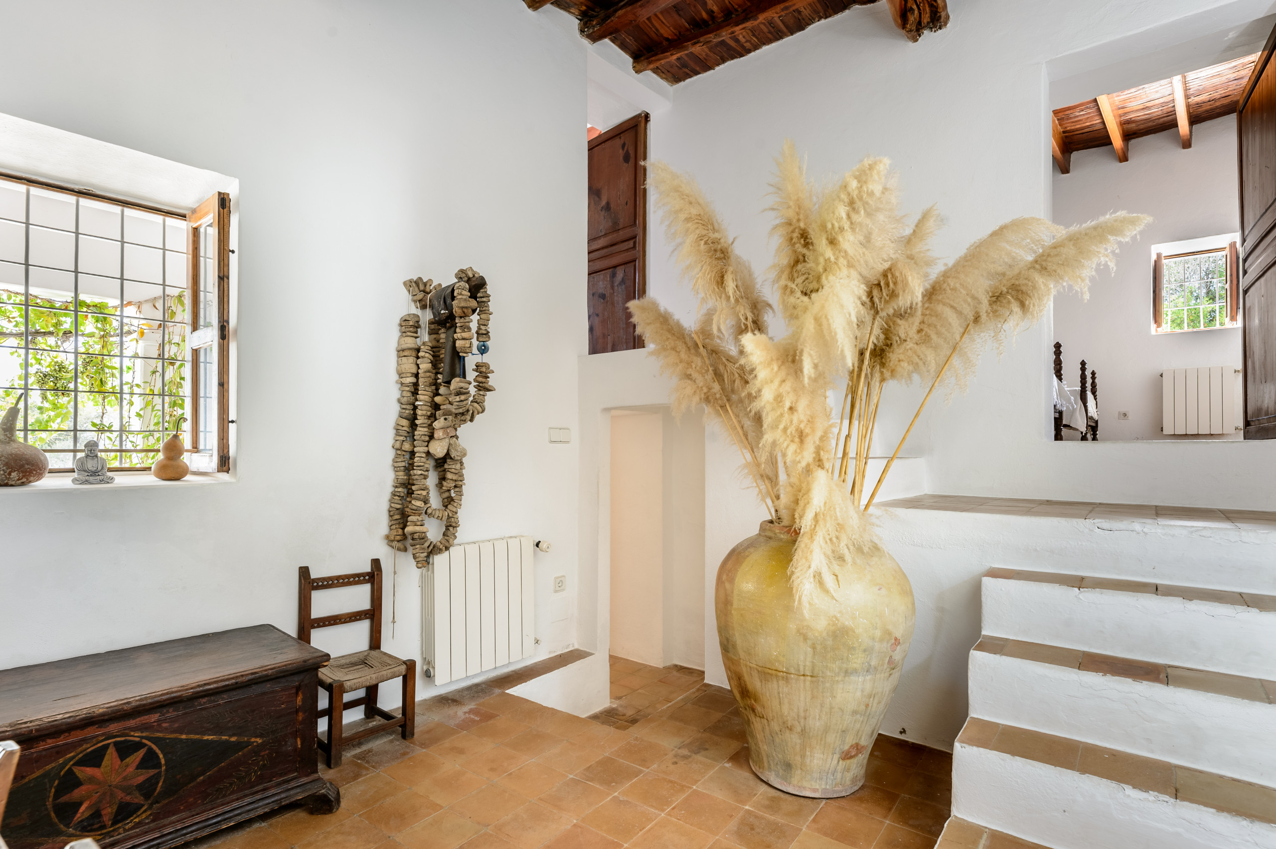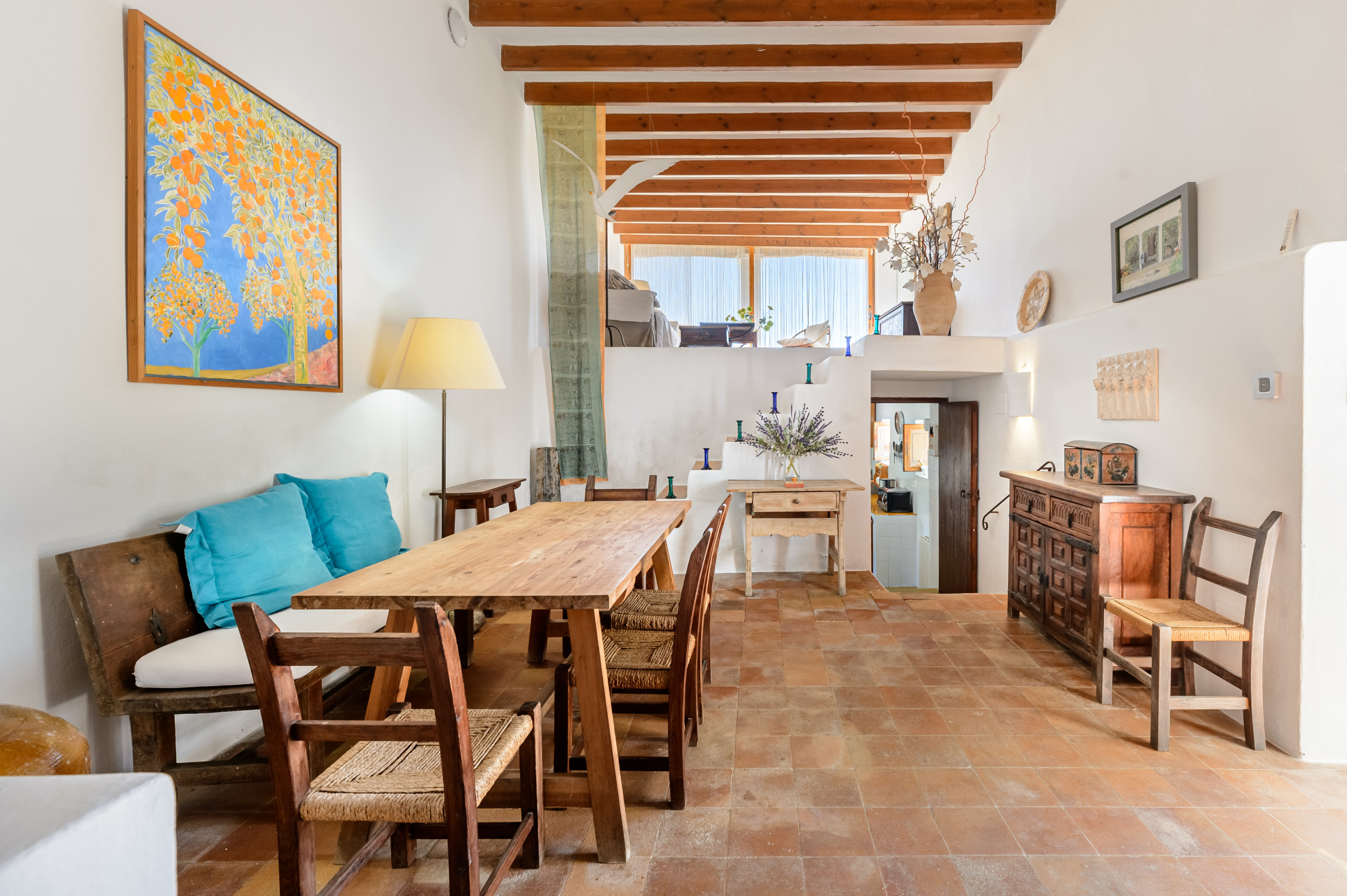 Can Felix ist ein charmanter traditioneller iberischer Bauernhof mit insgesamt 5 Schlafzimmern und Platz für 11 Personen in einer ländlichen Zone von 21 Hektaren, umgeben von Kiefern, Heimat von Turteltauben und Steinwachholen. Dieser wunderschöne Bauernhof befindet sich in der Nähe des kleinen Dorfes Forada, nur 5,8 km von San Rafael, 6,6 km von San Antonio, 8,2 km von Santa Gertrudis und 12,1 km von der Stadt Ibiza entfernt. Das Dorf Forada bietet eine Bar, ein Restaurant, eine Kirche, einen Laden und eine Kunstgalerie. Das Haus wird mit Solar- und Windenergie betrieben, mit einem Notstromgenerator für zusätzliche Zuverlässigkeit.