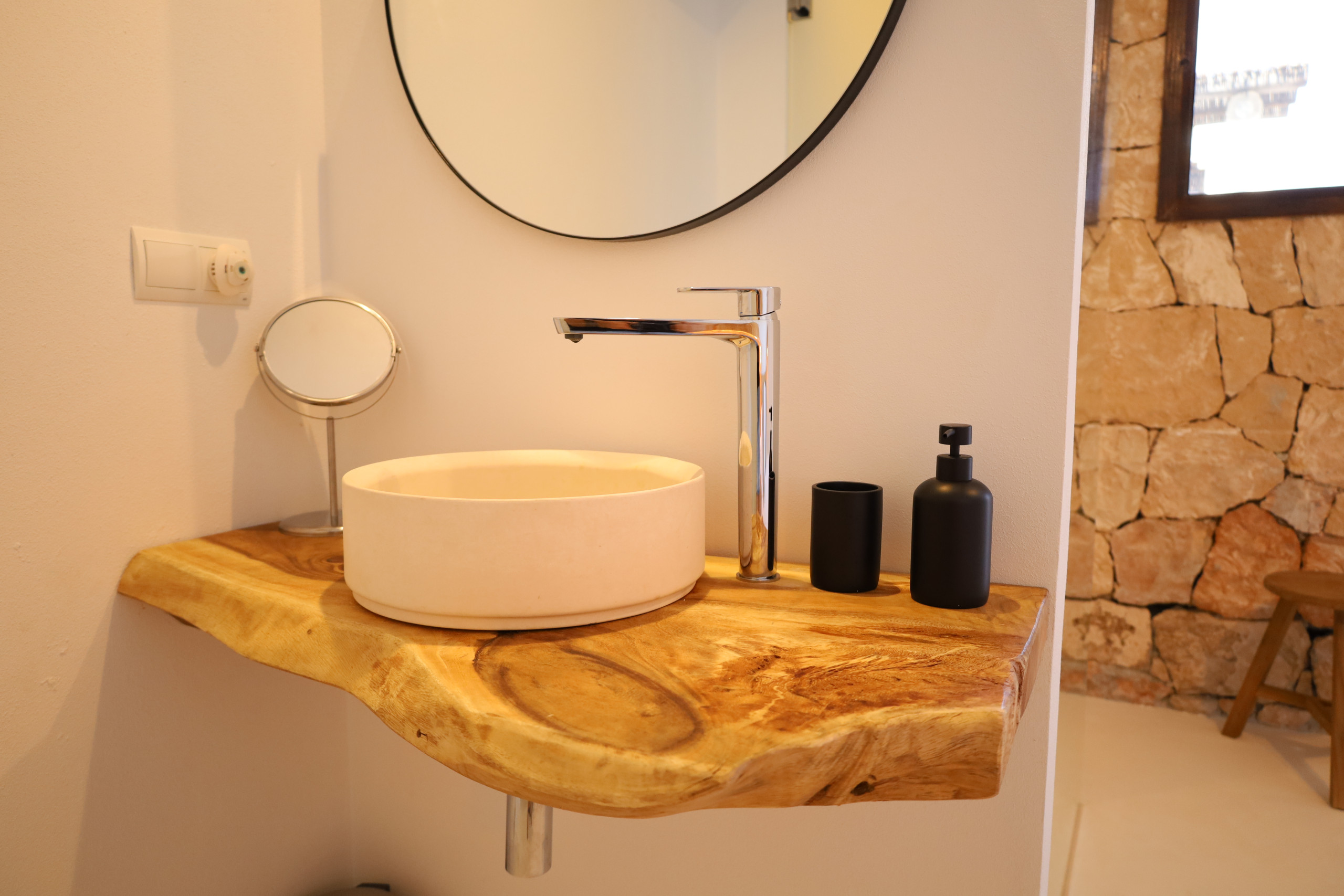 Im Obergeschoss befindet sich das dritte Schlafzimmer mit einem Bett von 150 x 200 cm, einem Badezimmer en suite mit Dusche und einem Balkon mit wunderschönen Ausblicken auf die Berge und den Pool.
