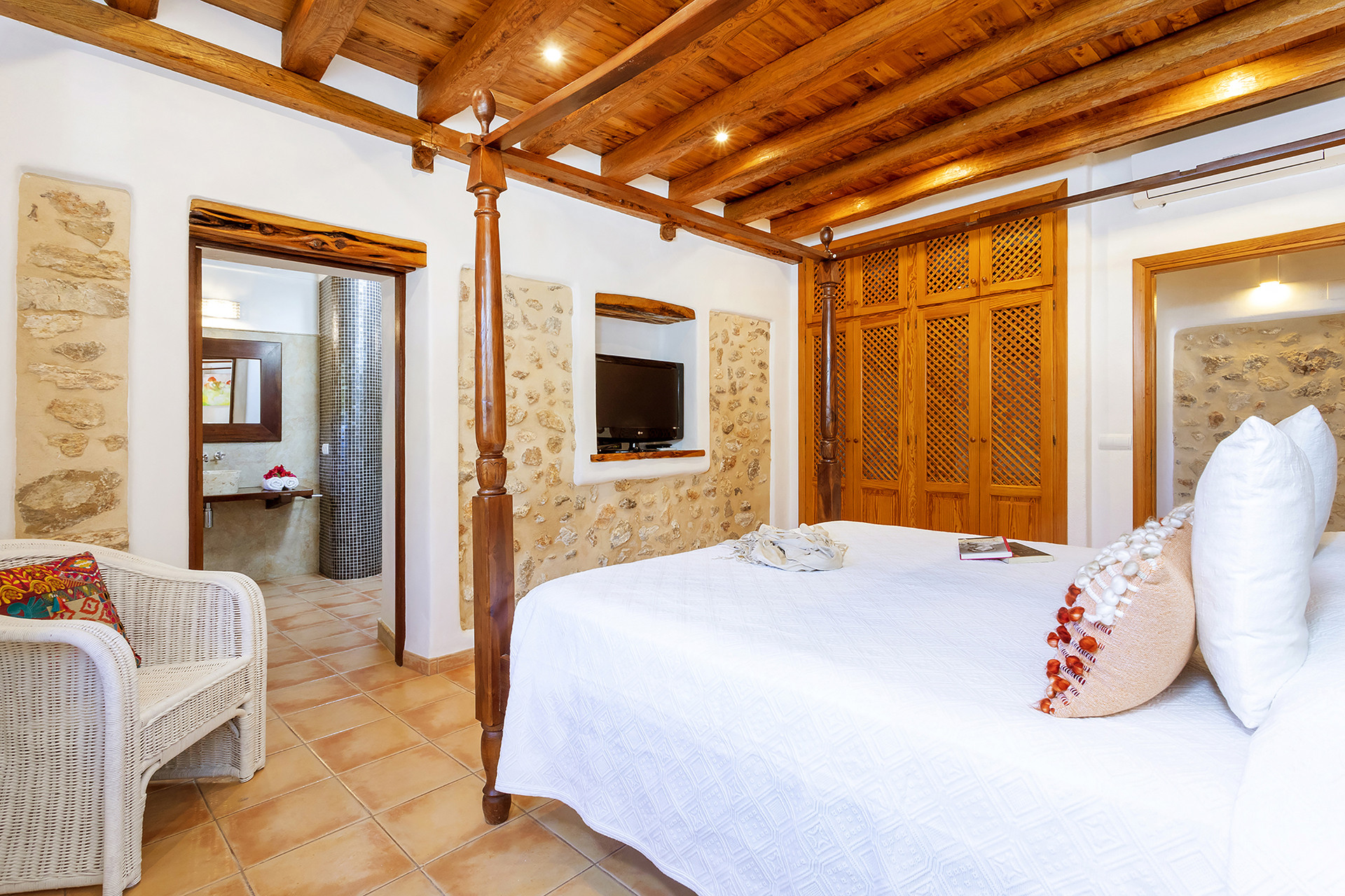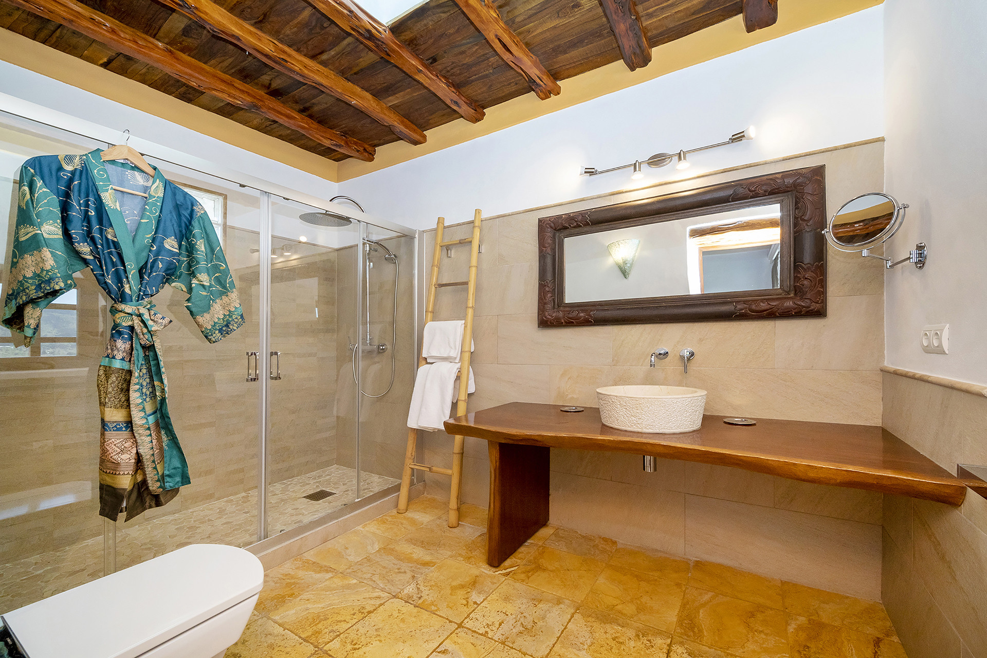 Villa Serenity bietet eine Zuflucht der Ruhe und Gelassenheit in einer natürlichen Umgebung, die dazu einlädt, den Trubel des Alltags hinter sich zu lassen. Sie kombiniert die Eleganz eines traditionellen Landhauses im iberischen Stil, das seine Decken aus Wacholderbaum-Holz makellos bewahrt, mit einer Dekoration, die von balinesischer und mediterraner Inspiration geprägt ist, gekennzeichnet durch kunsthandwerkliche Details und Räume, die in vollkommener Harmonie fließen.