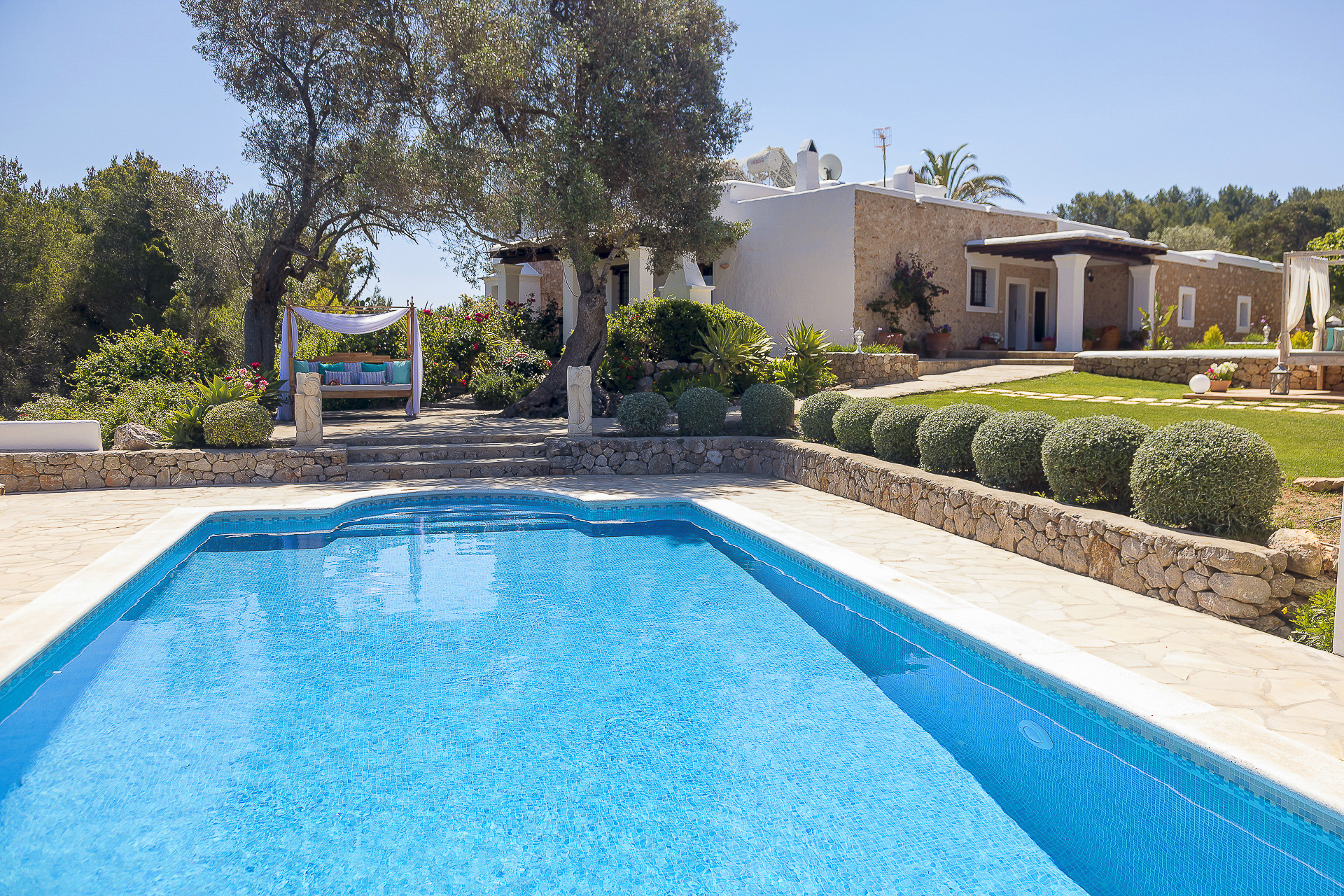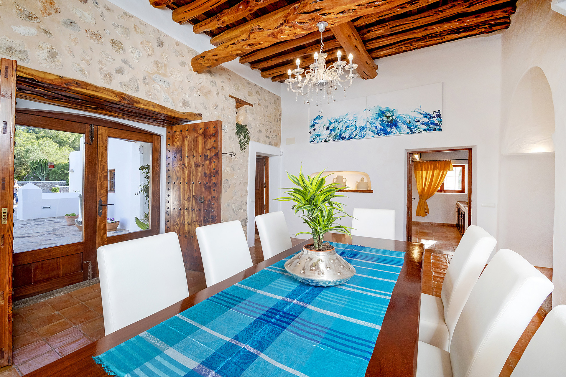 Tauche ein in das authentische Wesen von Ibiza in Villa Calma, einem spektakulären Bauernhaus, das einen traditionellen Charme kombiniert und gleichzeitig die typische iberische Architektur bewahrt, mit weißen Kalkwänden und einem wunderschönen Wacholderdach, das jedem Raum Wärme, Authentizität und Charakter verleiht. Das Innere bietet eine Mischung aus Rustikalem mit zeitgenössischen Akzenten. Diese Immobilie ist ideal für Familien oder Gruppen, die danach suchen, mit der Natur wieder in Kontakt zu kommen, sich zu erholen und die ruhige Seele der Insel zu genießen.