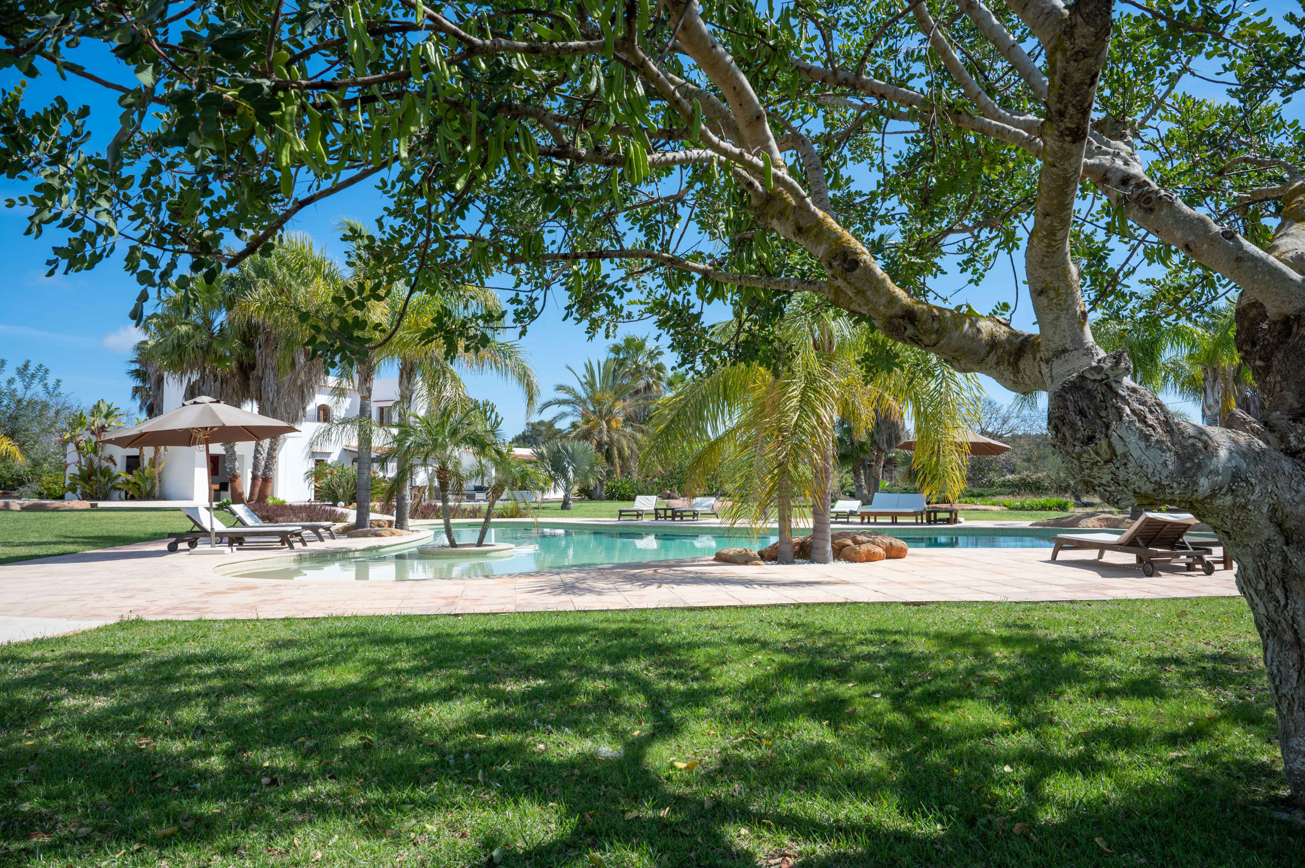 Prächtige Villa im traditionellen Stil von Ibiza, die auf dem Land außerhalb von Santa Eulalia liegt, in einer sehr ruhigen Umgebung, ideal für Familien, die die Harmonie mit der Natur erleben möchten. Sie befindet sich nur 8 Minuten von Santa Eulalia und dem Hippie-Markt Las Dalias im malerischen Dorf San Carlos entfernt.