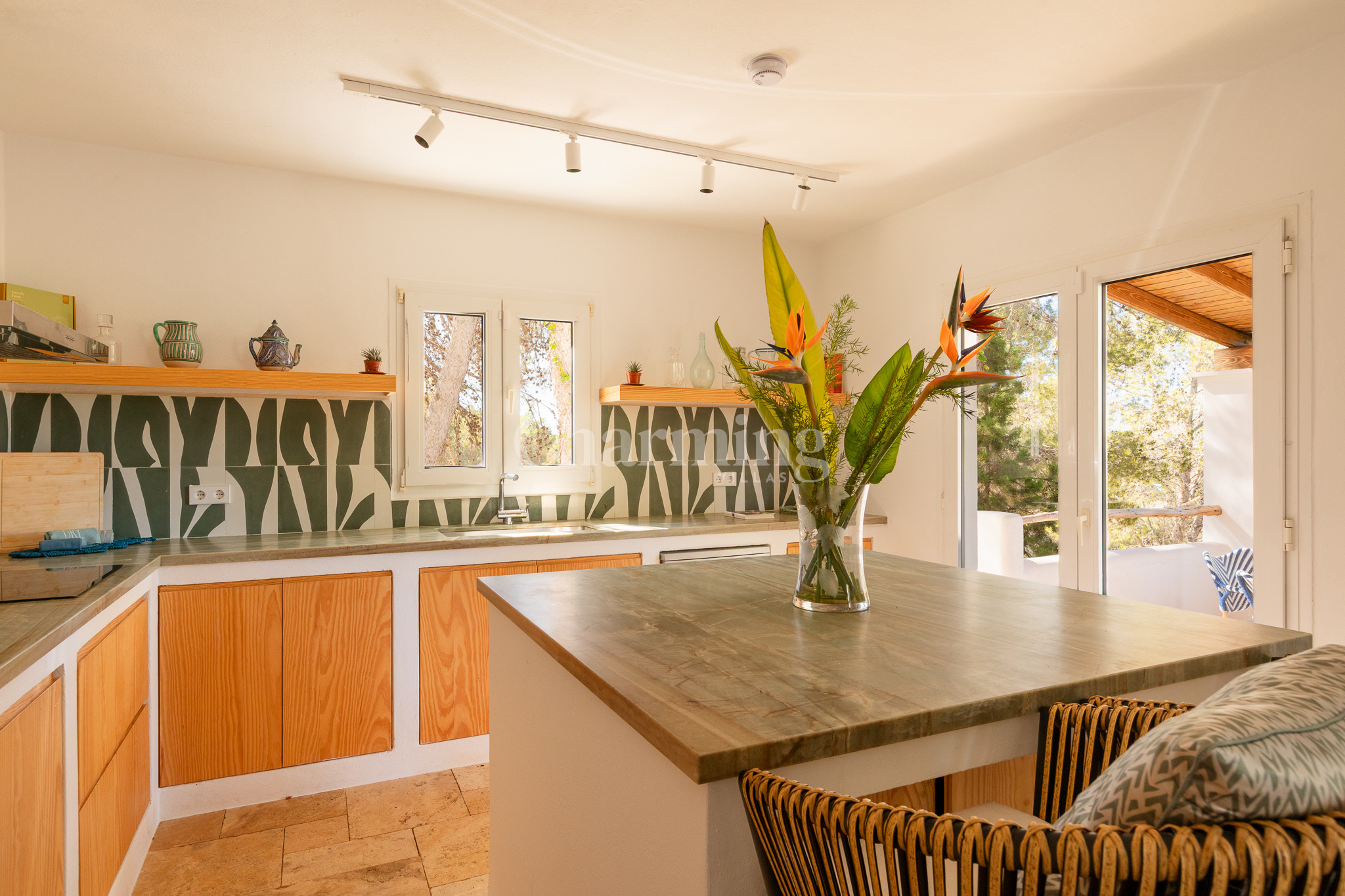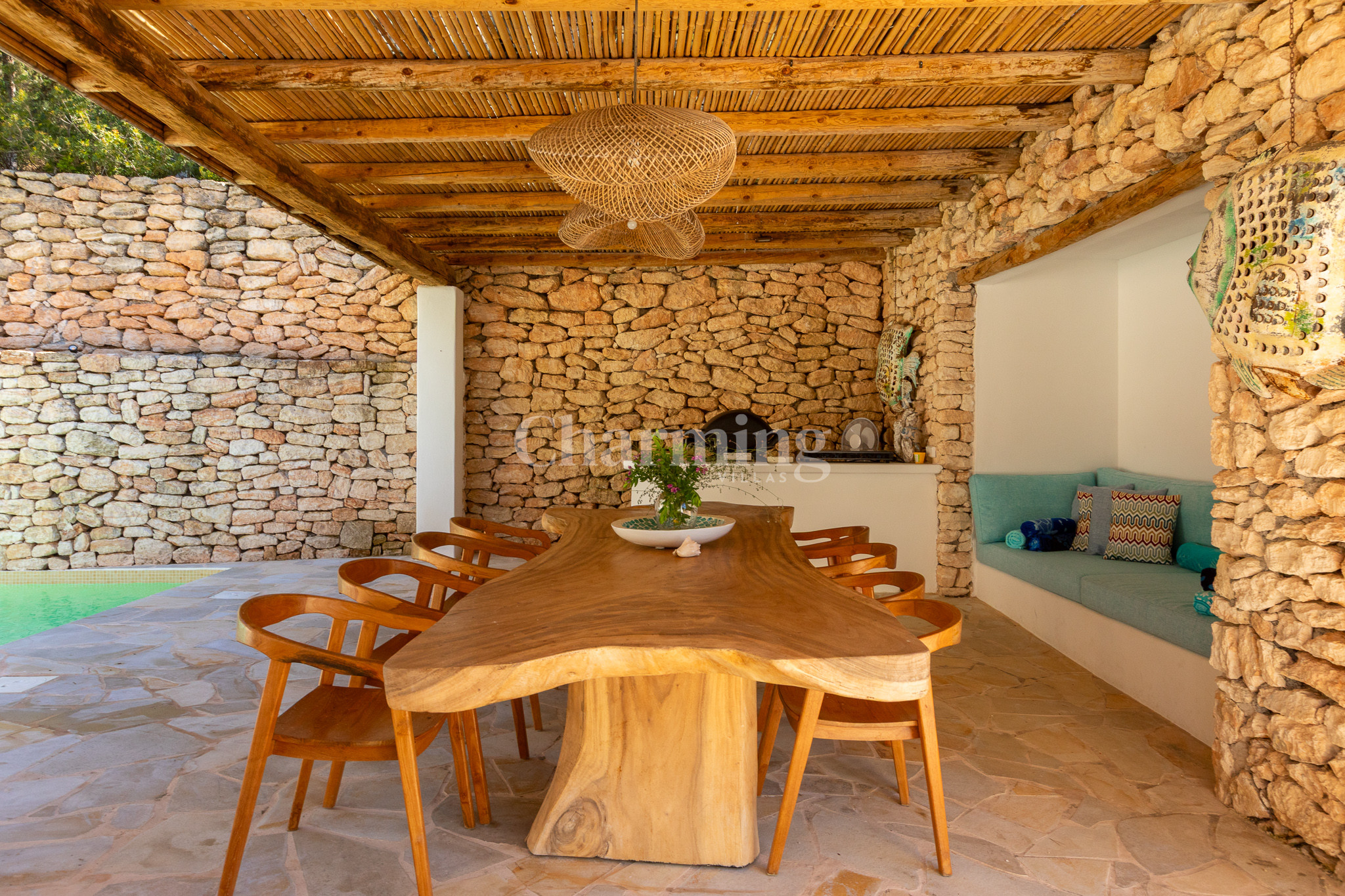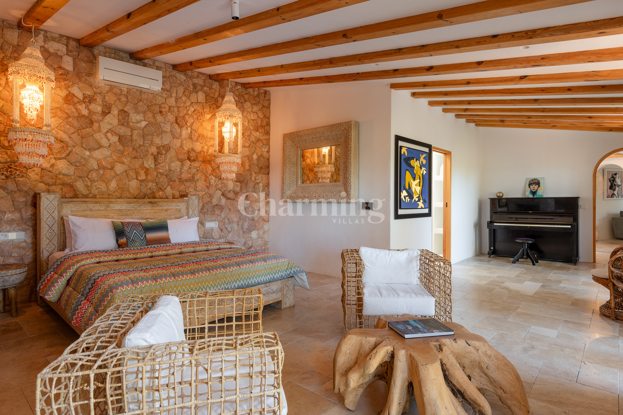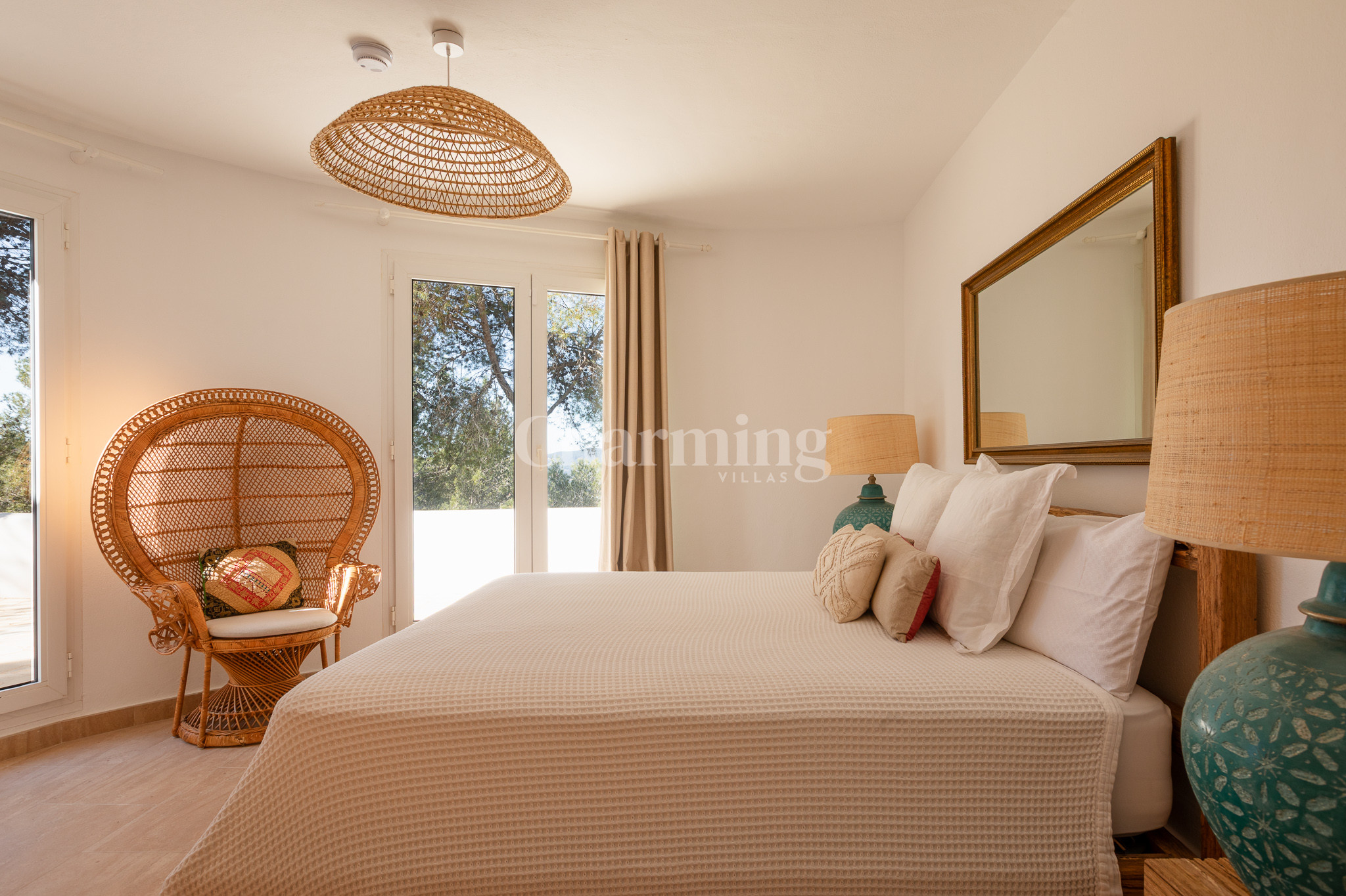 Villa Primavera is a beautiful villa that has been recently renovated and is located on a hill near the village of San Carlos. Its location is ideal as you can walk to the village, close to some of the most well-known restaurants in the area, the famous hippy market of Las Dalias and the new nightclub Akasha. By car, you can visit the spectacular beaches of Cala Llenya, Cala Nova and Aguas Blancas.