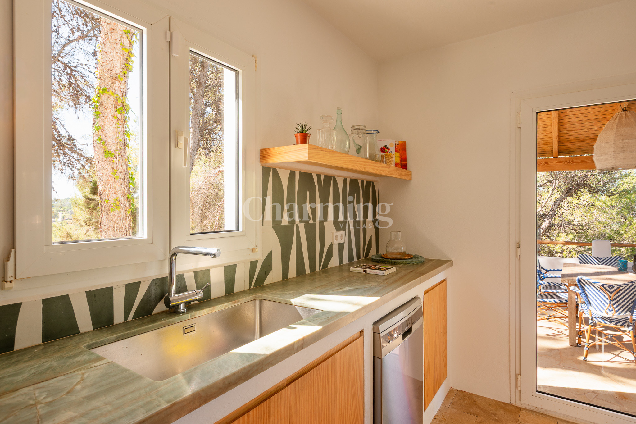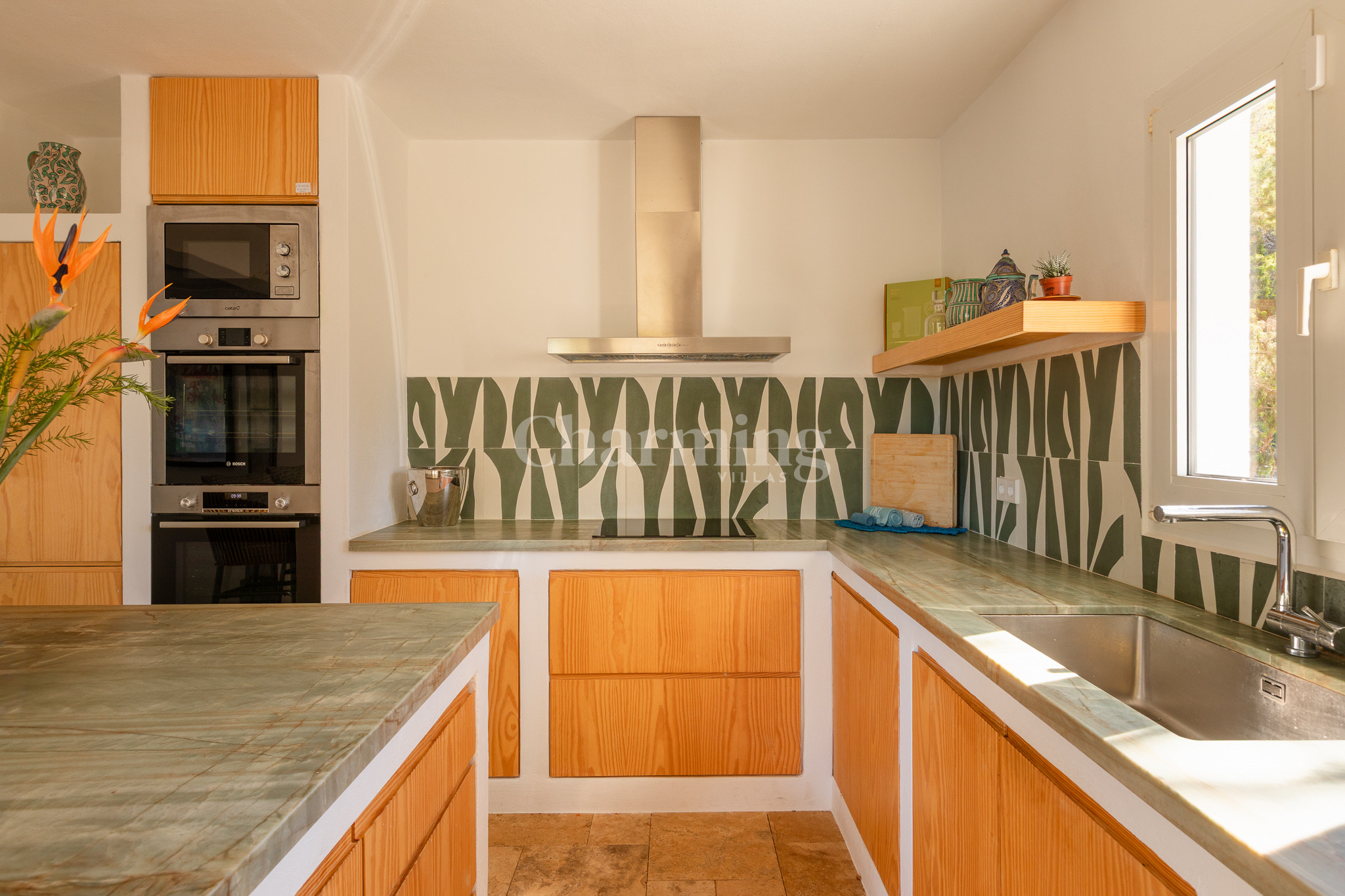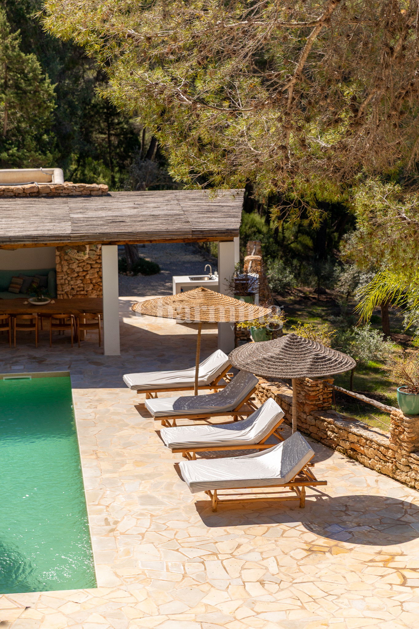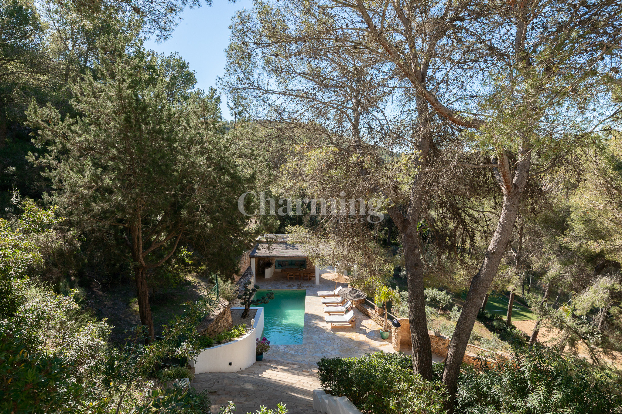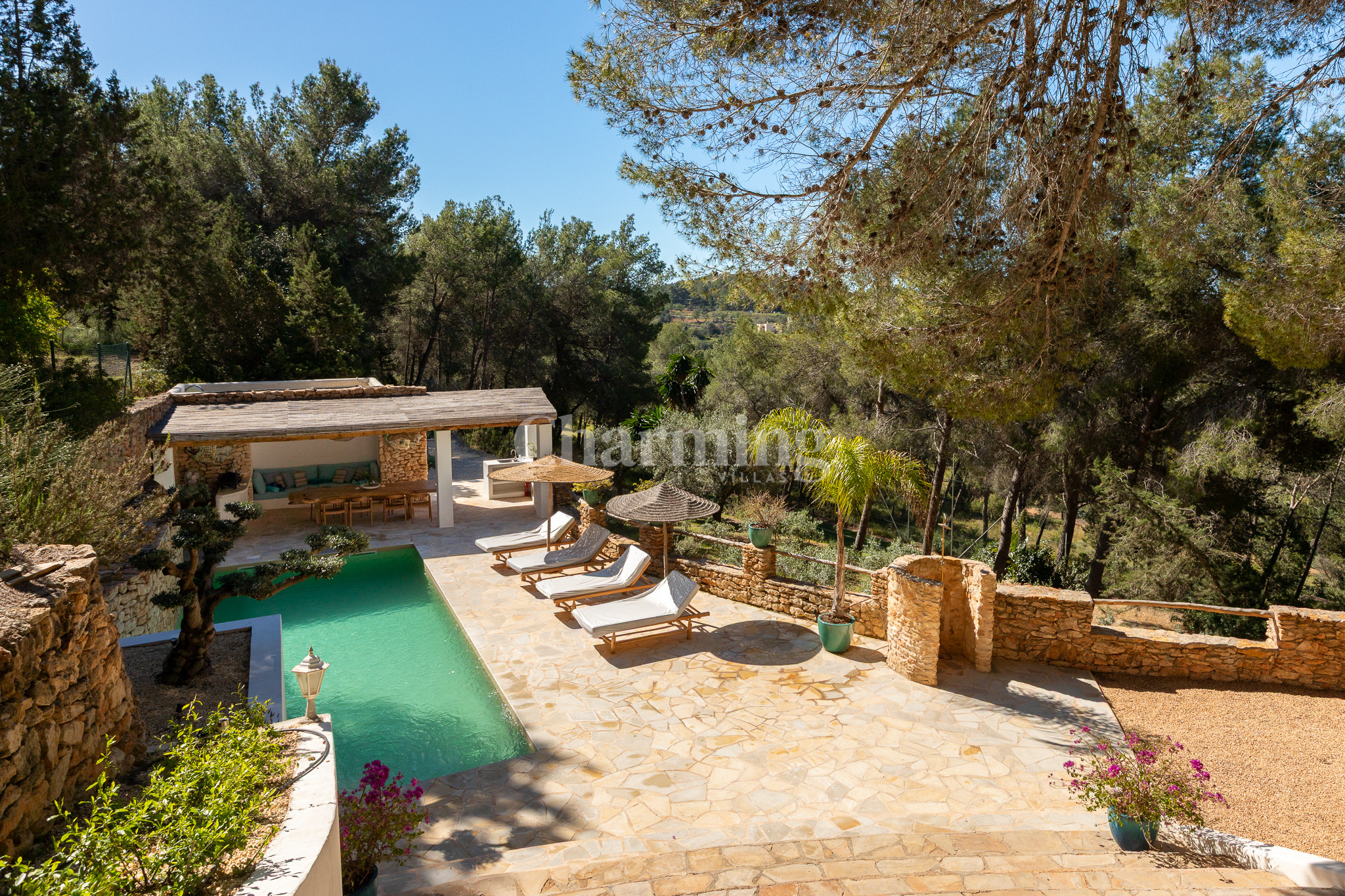 Villa Primavera is a beautiful villa that has been recently renovated and is located on a hill near the village of San Carlos. Its location is ideal as you can walk to the village, close to some of the most well-known restaurants in the area, the famous hippy market of Las Dalias and the new nightclub Akasha. By car, you can visit the spectacular beaches of Cala Llenya, Cala Nova and Aguas Blancas.