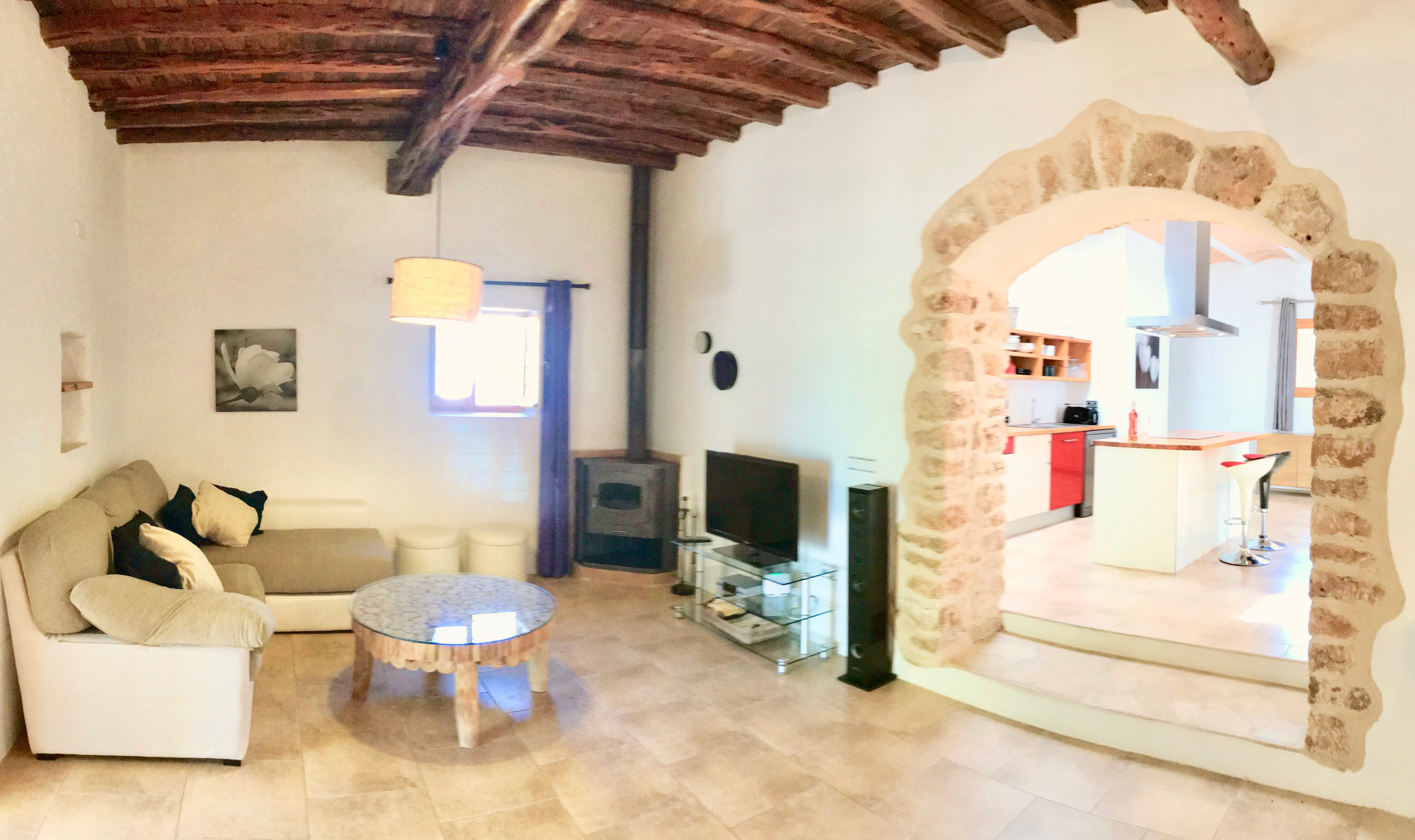 Belle villa avec vue sur la mer et entourée de nature, située dans une zone rurale paisible, se trouve à quelques minutes de certaines des calanques les plus emblématiques d'Ibiza, telles que Cala Vadella, Cala d'Hort et Cala Molí (à seulement 5-6 km).