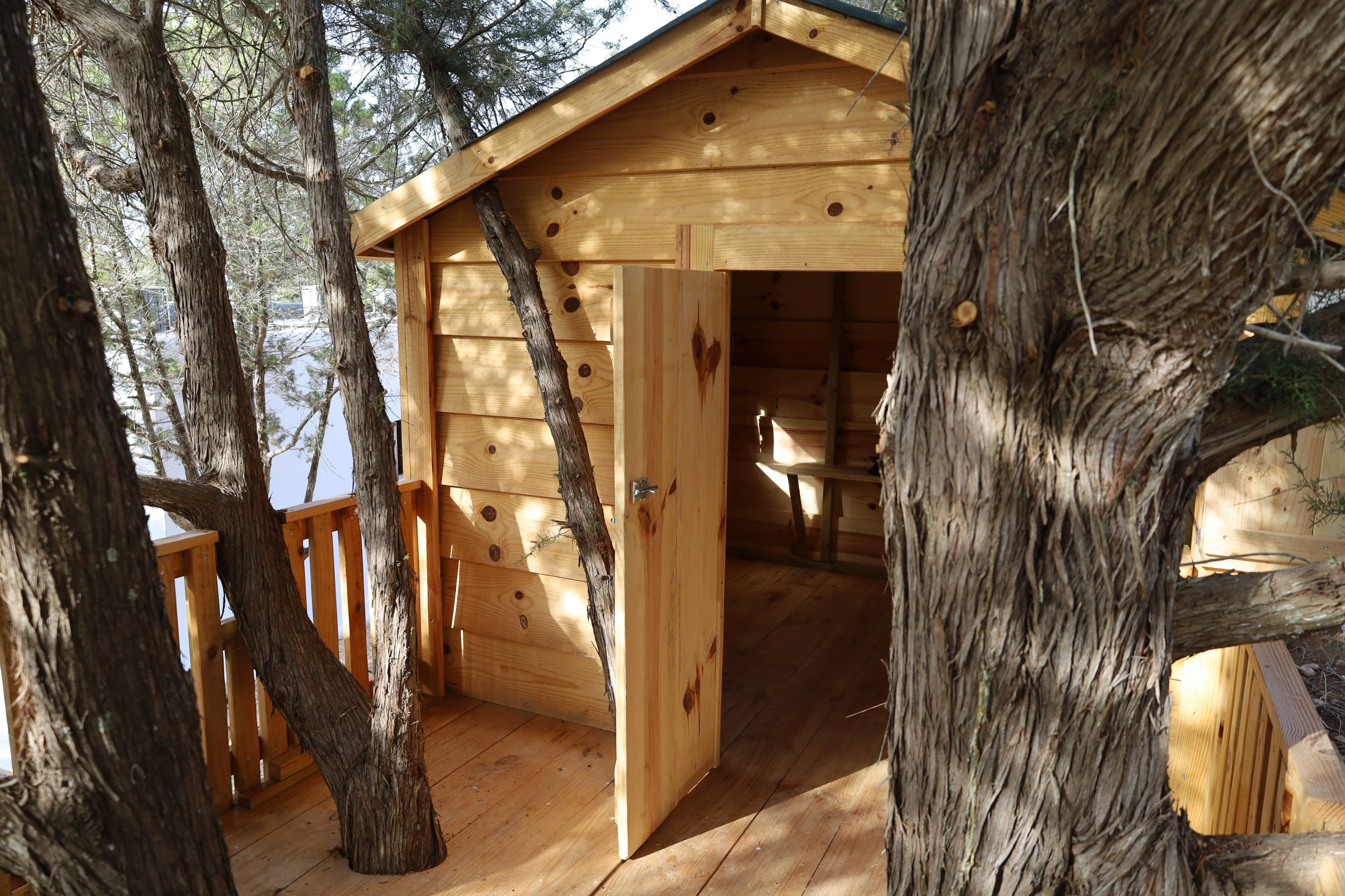 À l'extérieur se trouve une piscine de 5 x 8m, une zone chill-out à côté de la piscine, depuis cette zone on a une vue sur la mer et le coucher de soleil. À l'arrière de la maison, près de l'annexe de la cuisine, il y a une cabane en bois dans l'arbre idéale pour les plus petits.