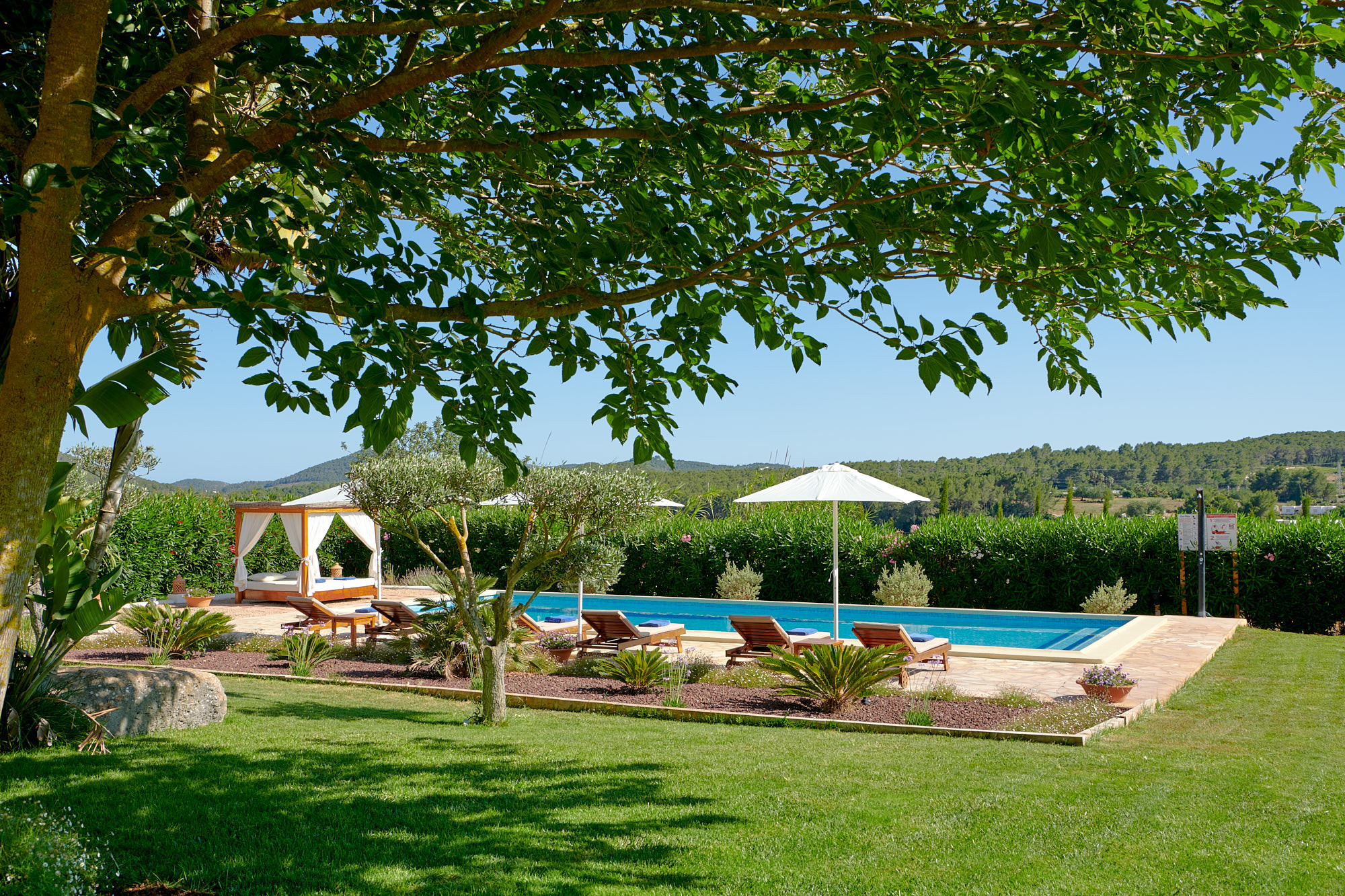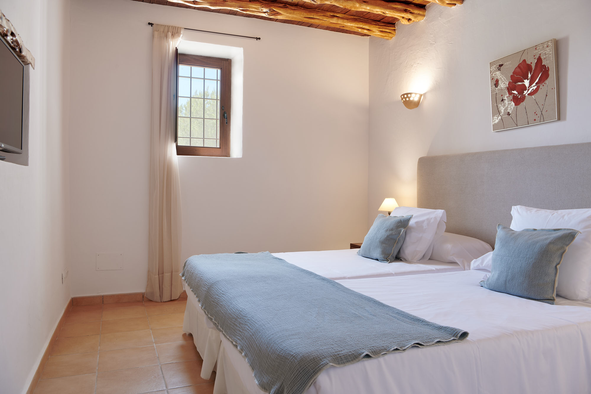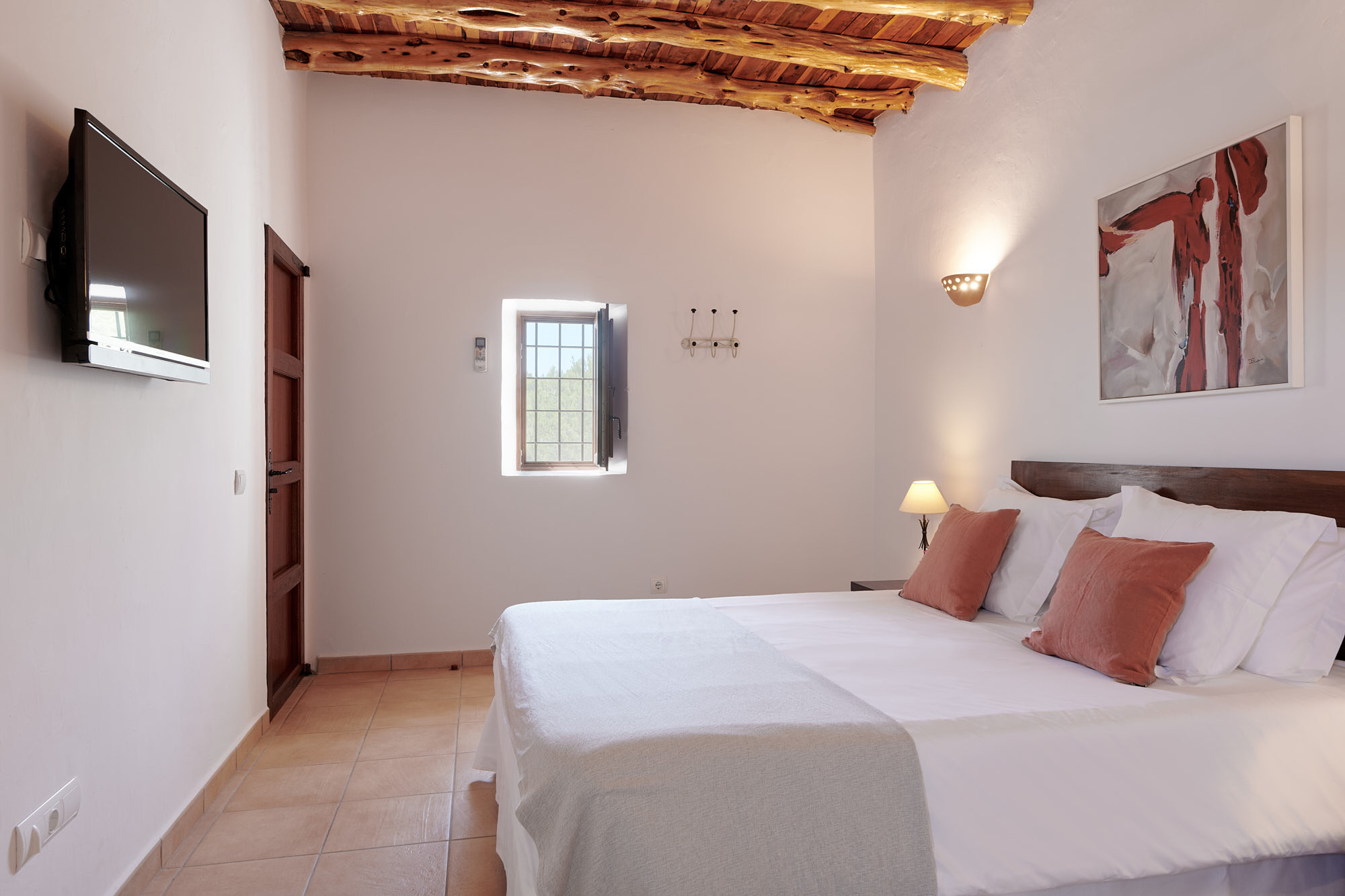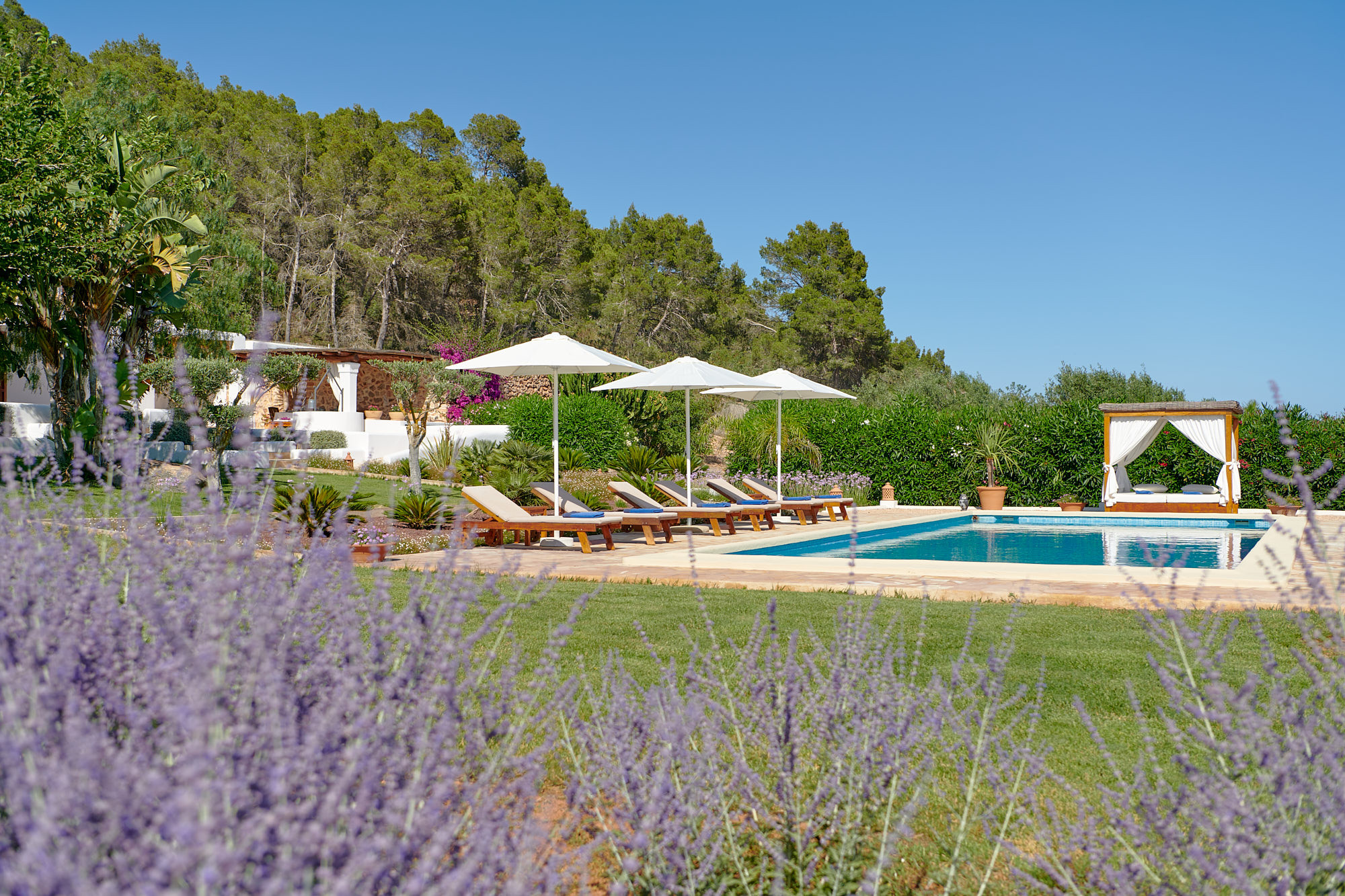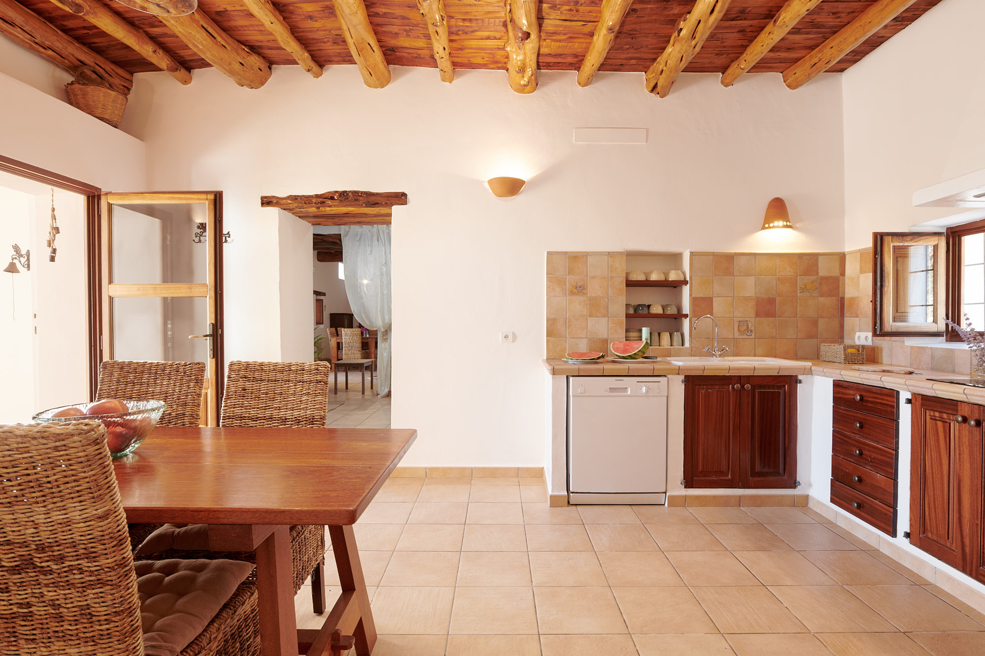 Belle propriété de style traditionnel ibicéen de 350m2, très bien entretenue et décorée avec beaucoup de goût. Elle dispose d'un total de 5 chambres et peut accueillir 9 invités. Elle est située dans une vallée tranquille, entre les villages de Santa Gertrudis et Santa Eulalia, entourée de campagne et de forêts de pins.