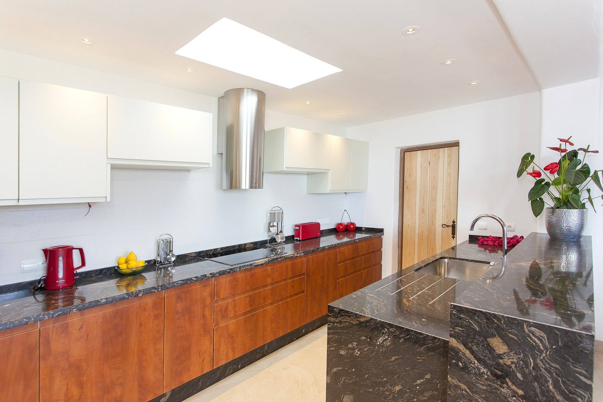 À l'extérieur, la propriété surprend avec des vues impressionnantes sur la vallée de Morna, une terrasse accueillante avec un toit en bois de genévrier, une table pour dix convives, une cuisine extérieure et une piscine à débordement avec les meilleures vues, créant un environnement parfait pour se déconnecter de l'agitation et se reconnecter avec la nature.
