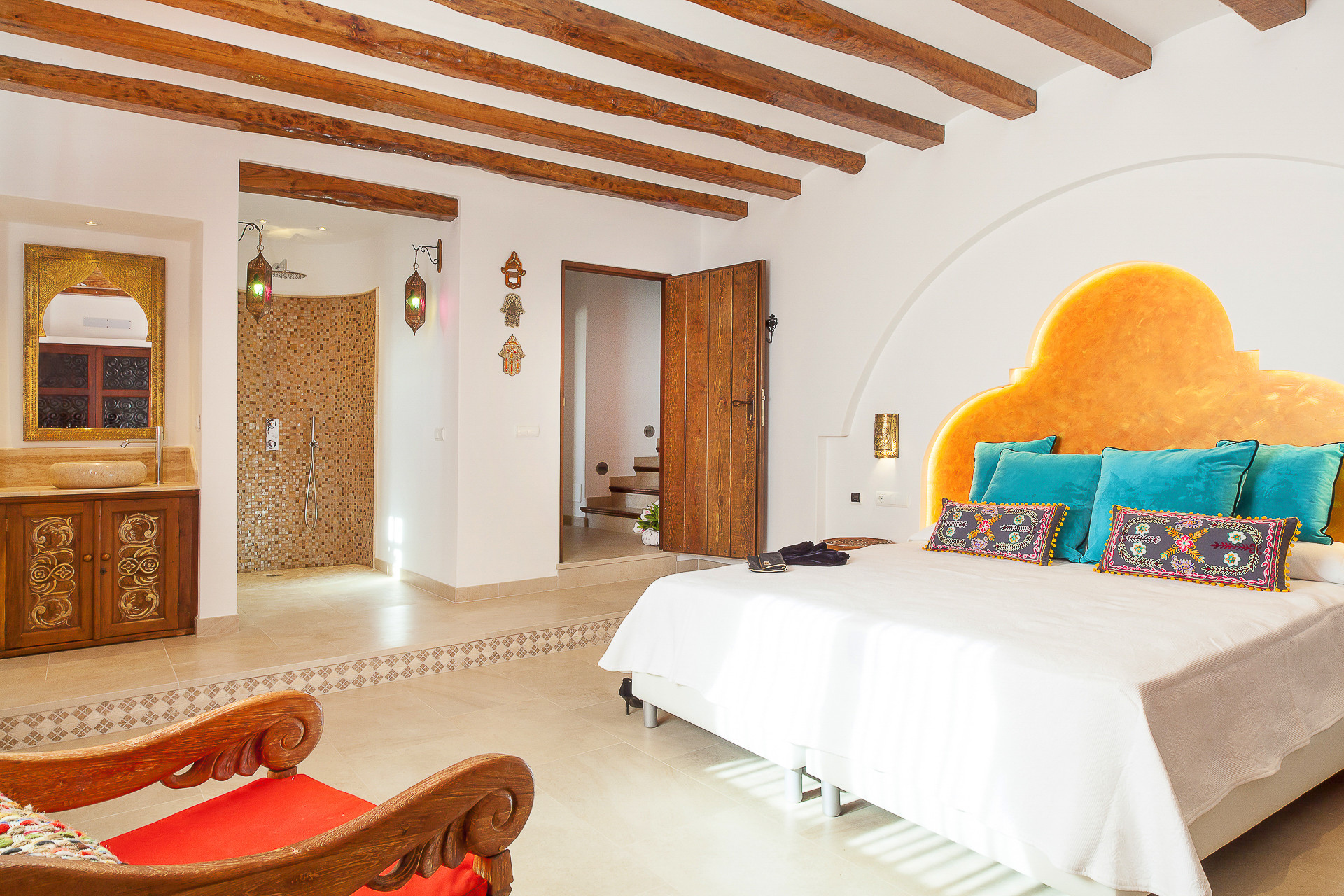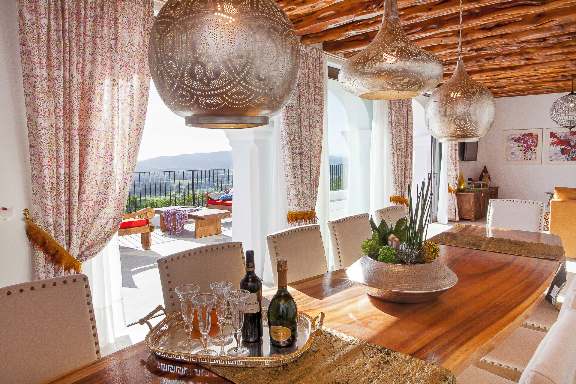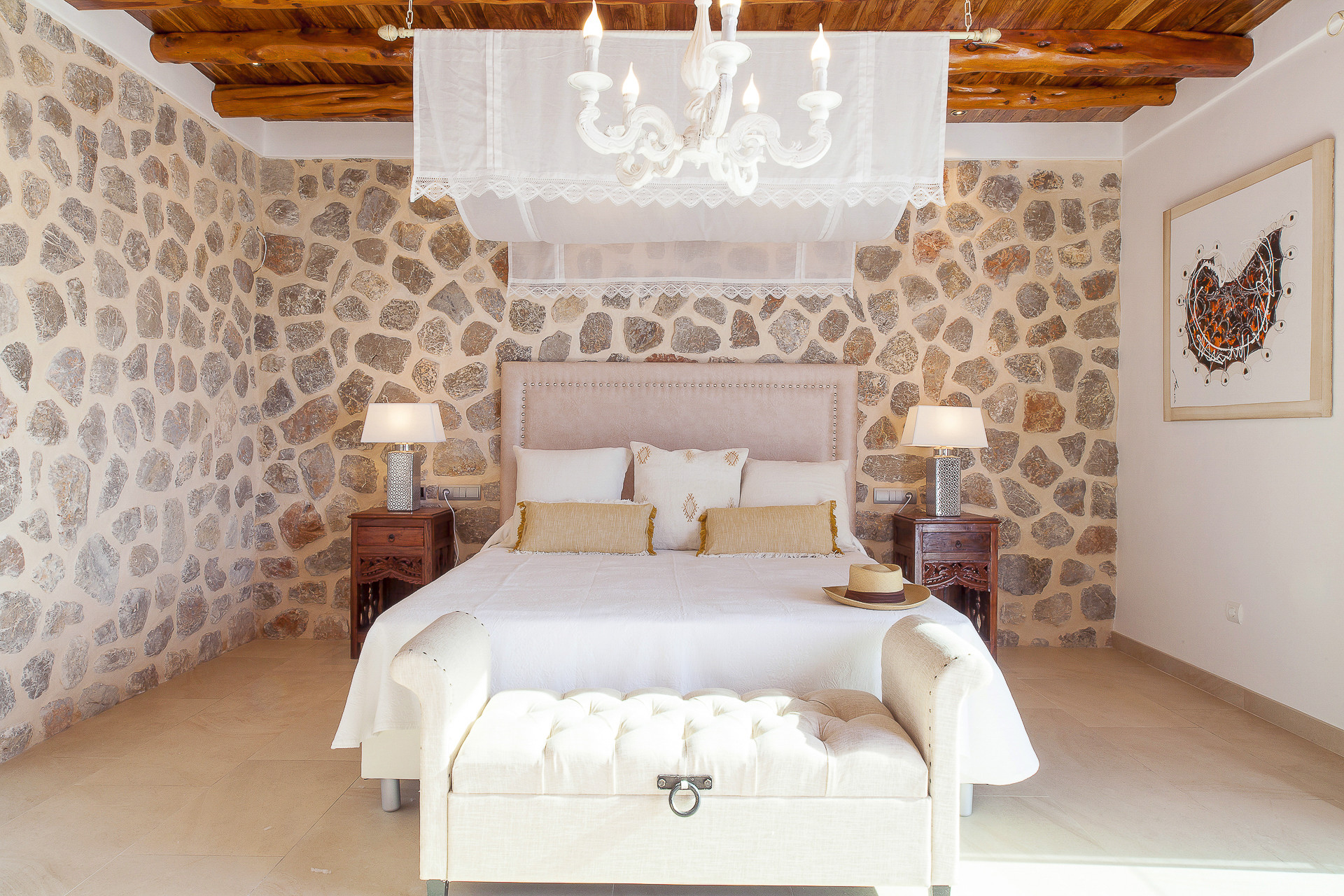 Villa Serenity offre un refuge de paix et de tranquillité dans un environnement naturel qui invite à laisser derrière soi l'agitation quotidienne, combinant l'élégance d'un domaine traditionnel de style ibicenco qui conserve impeccablement ses plafonds en bois de genévrier, avec une décoration d'inspiration balinaise et méditerranéenne, marquée par des détails artisanaux et des espaces qui coulent en parfaite harmonie.