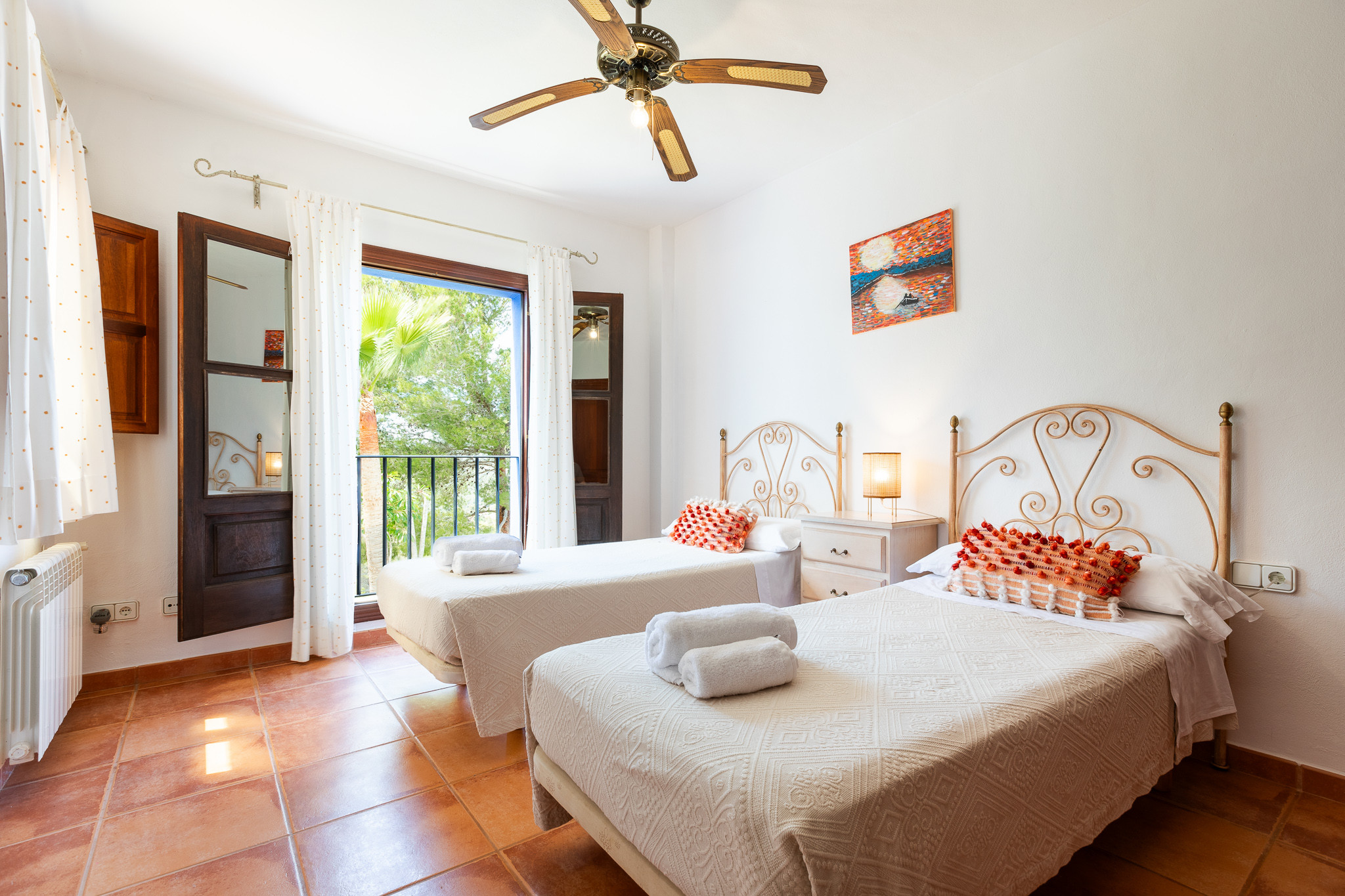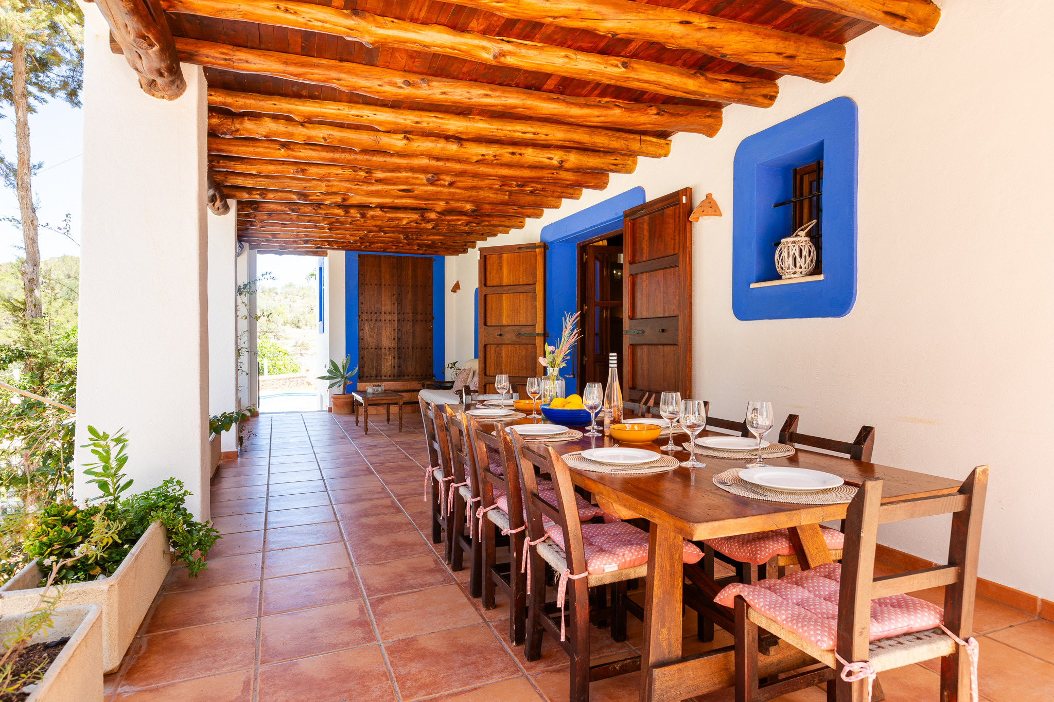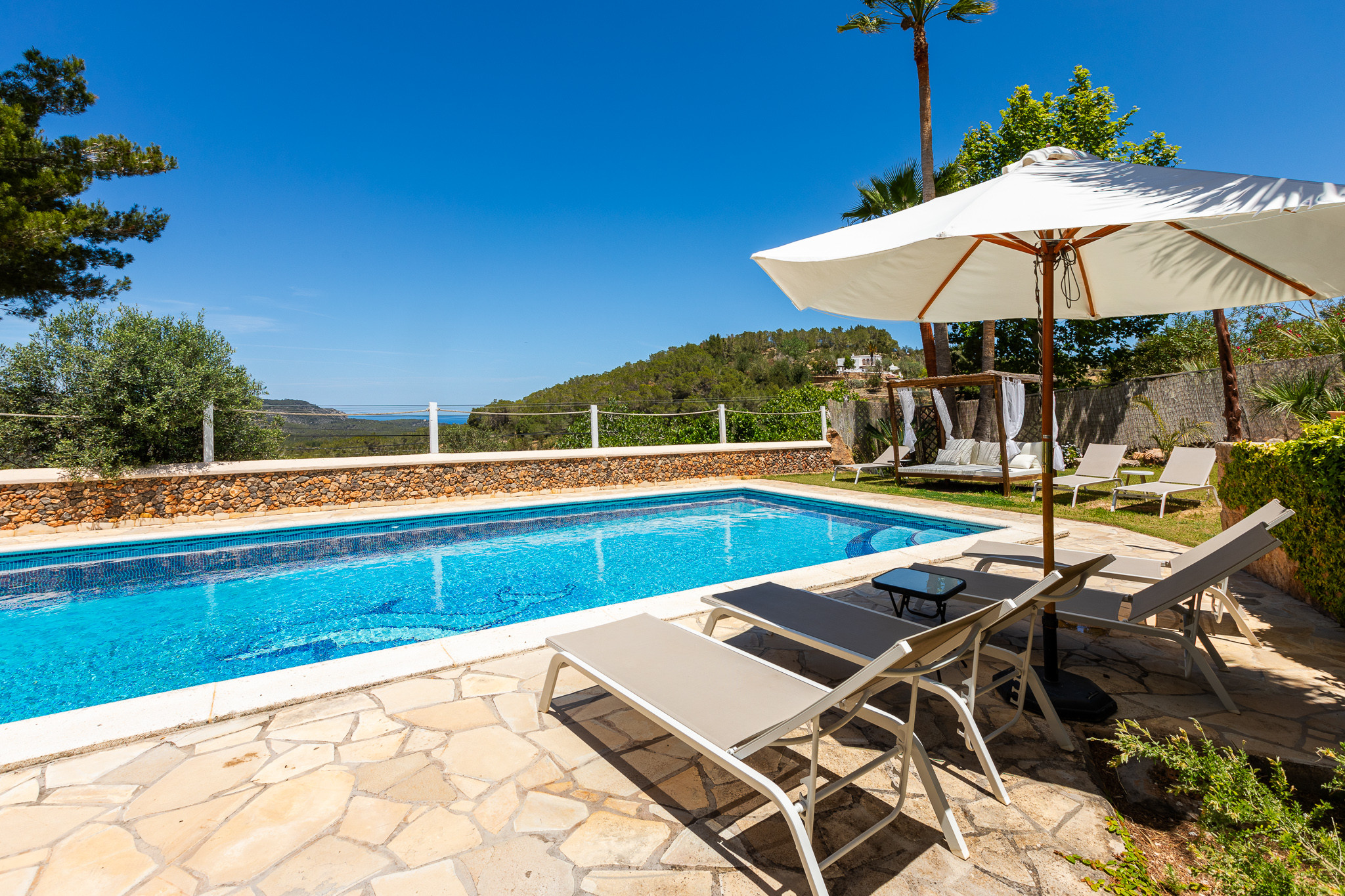 Magnifica villa situata su una collina, con un arredamento unico e multiculturale che mescola diversi mobili, pezzi d'arte ed elementi di Ibiza, Indonesia e Marocco. Si trova in un contesto completamente privato circondato da un bosco di pini e a pochi minuti in auto dal paese di San Miguel. Può ospitare fino a 12 ospiti e dispone di 6 comode suite, ciascuna con il proprio stile, bagno privato, cassaforte e aria condizionata.