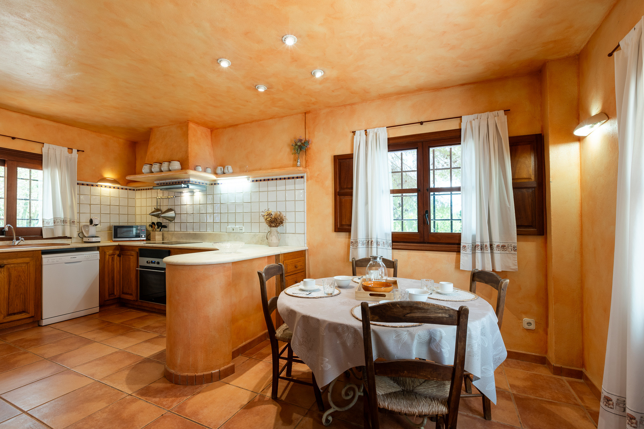 La villa è attrezzata con una grande varietà di comodità per garantire il comfort e il relax. Sia la sala da pranzo interna che esterna hanno una capacità di oltre 20 persone ed è perfetta per grandi gruppi. La cucina è completamente attrezzata con tutto il necessario e ha accesso a una sala da pranzo esterna sotto una pergola.