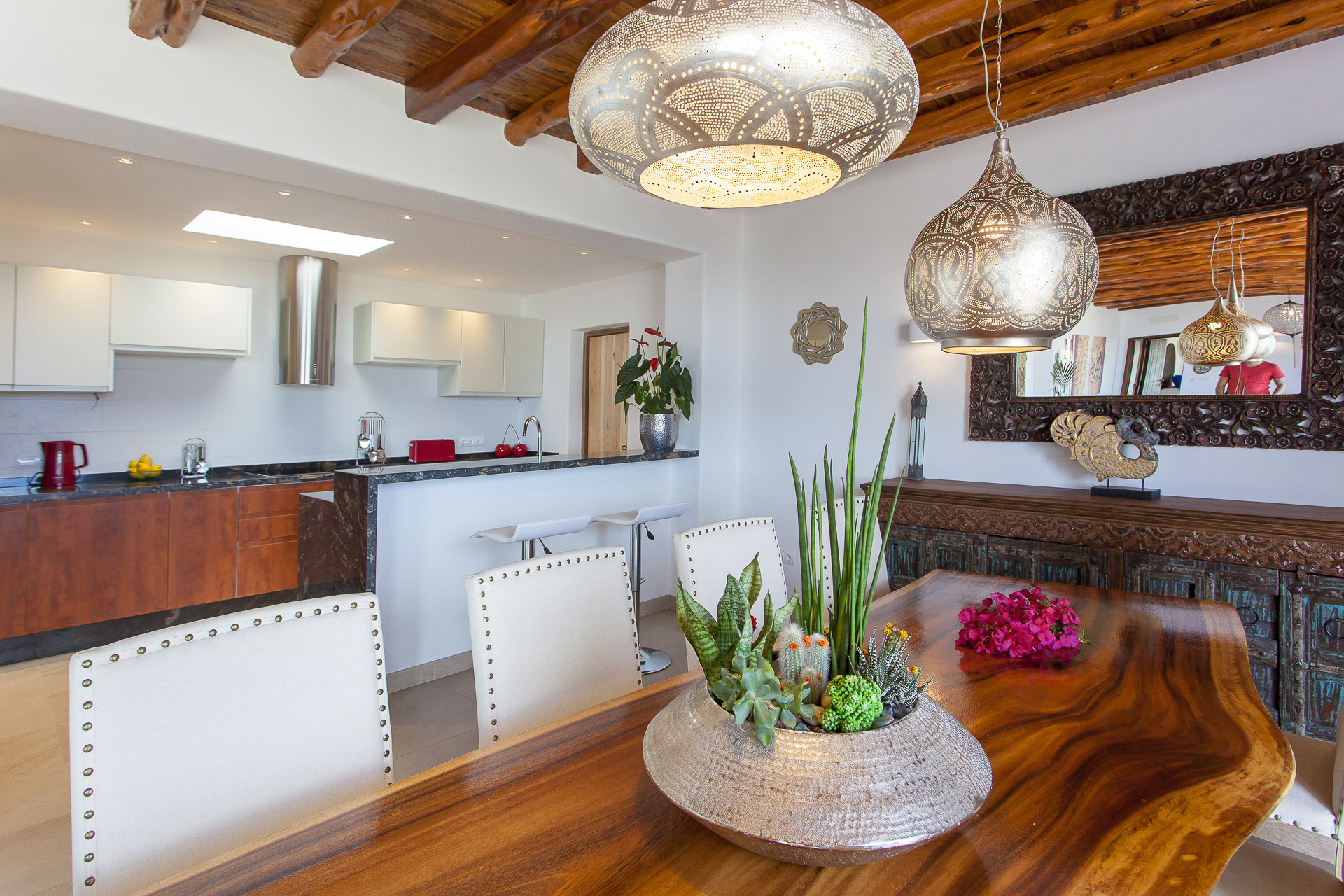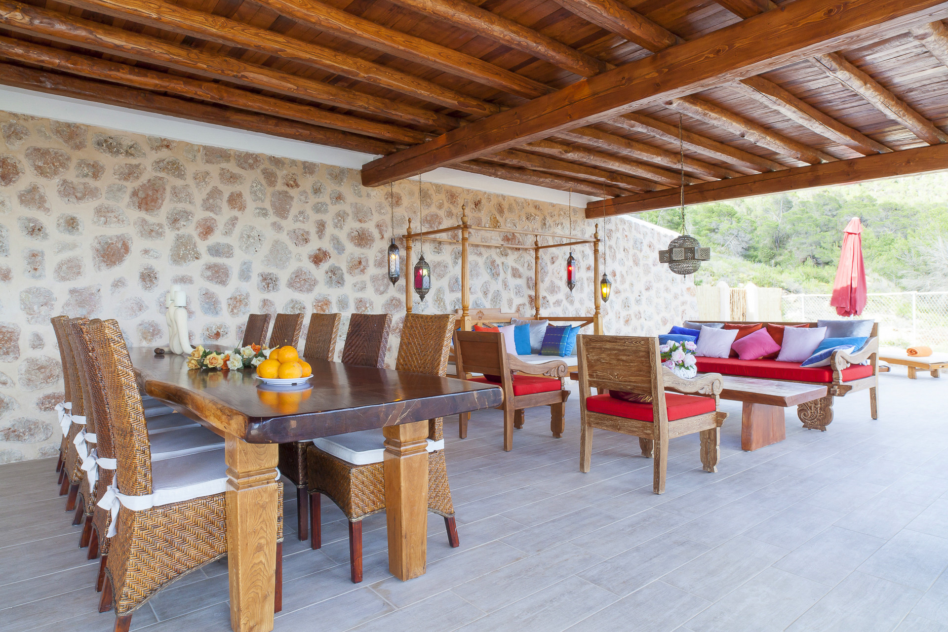 La villa a Santa Eulalia des Riu ha 5 camera(e) da letto e capacità per 10 persone. Alloggio arredato con gusto e moderno, con vista al giardino e alla piscina. Si trova a 8 km della città "San Carlos", 9 km dalla spiaggia di sabbia "Aguas Blancas", 11 km dalla spiaggia di sabbia "Cala Llenya", 11 km dal supermercato "Supermercado Mercadona", 11 km della città "Santa Eulalia", 11 km della città "Santa Gertrudis", 11 km dalla spiaggia di sabbia "Cala Mastella", 20 km della città "Ibiza centro", 25 km dall'aeroporto e si trova in una zona tranquilla zone e rurale.Ha giardino, giardino arredato, casa recintata, terrazza, lavatrice, asciugatrice, barbecue, ferro da stiro, cassaforte, accesso internet (wifi), asciugacapelli, balconi, allarme, aria condizionata in tutte la stanze, piscina privata, parcheggio all'aperto in in struttura, Televisione.La cucina americana, a vetroceramica, è attrezzata con frigorifero, microonde, forno, congelatore, lavastoviglie, stoviglie/posate, utensili da cucina, caffettiera, friggitrice, tostapane, bollitore e spremi agrumi.