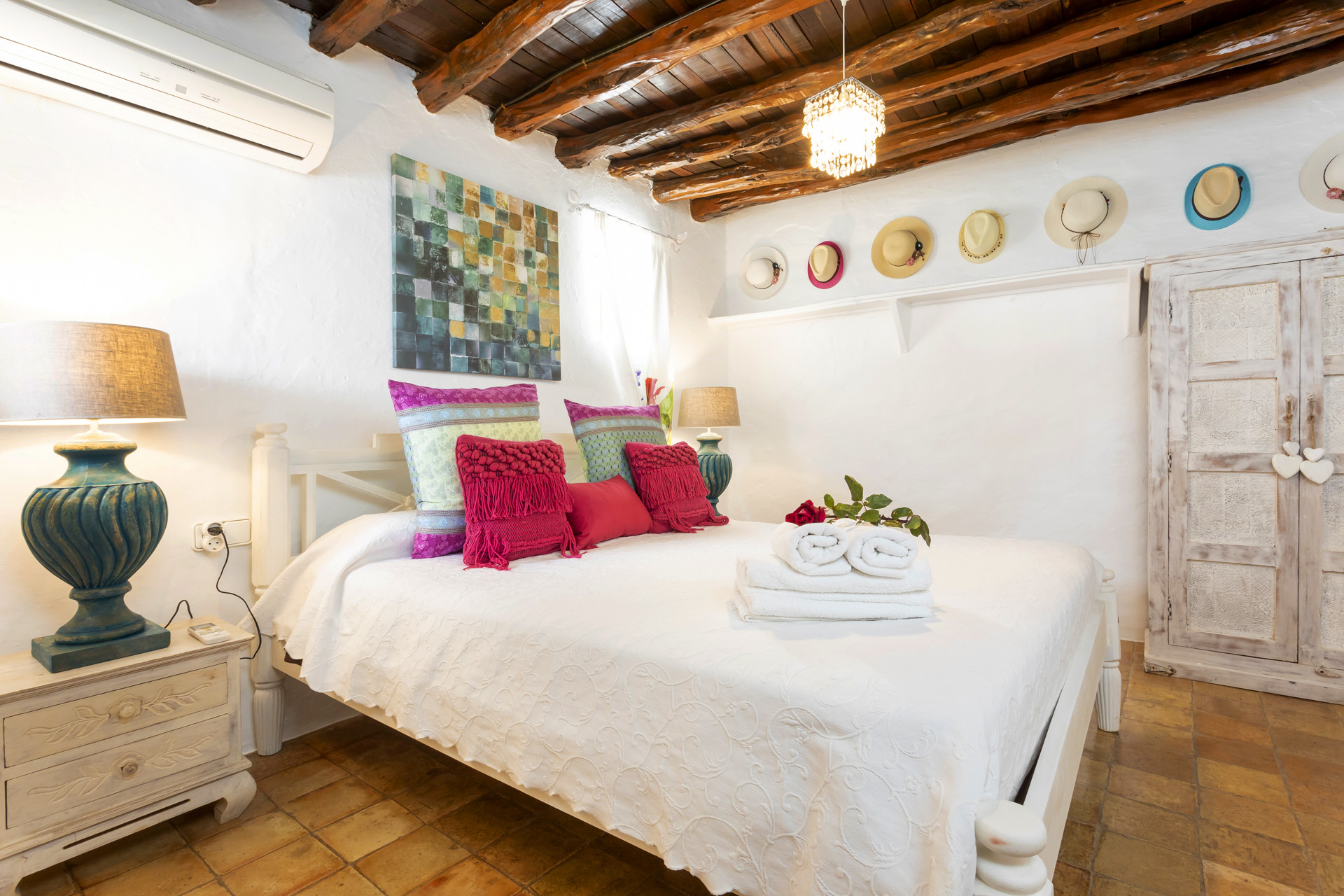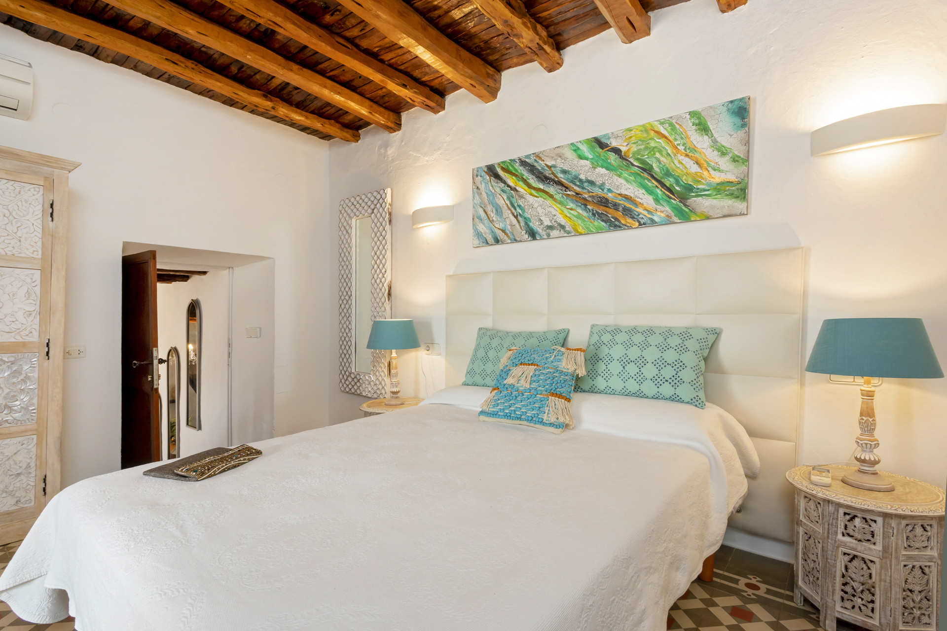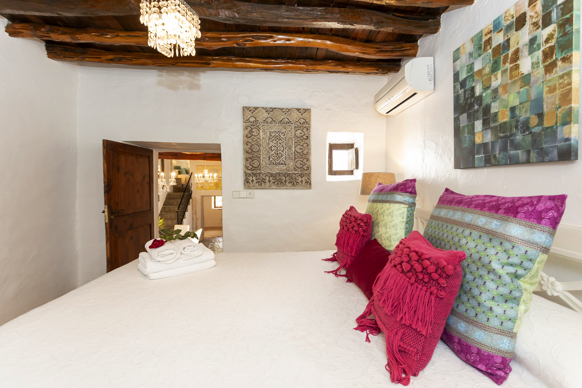 La villa a Santa Eulalia des Riu ha 6 camera(e) da letto e capacità per 12 persone. Alloggio bello e ampio, con vista alla montagna e al giardino. Si trova a 0 m dalla spiaggia rocciosa, 11 km della città "Santa Eulalia", 11 km dalla spiaggia di sabbia "Cala Llenya", 11 km dal supermercato "Eroski Santa Gertrudis", 11 km della città "San Carlos", 12 km dalla spiaggia di sabbia "Playa San Vicente", 14 km dalla spiaggia di sabbia "Playa Aguas Blancas", 19 km della città "Ibiza", 25 km dall'aeroporto e si trova in una zona con fascino zone e rurale.Ha giardino, giardino arredato, terrazza, lavatrice, asciugatrice, ferro da stiro, cassaforte, accesso internet (wifi), asciugacapelli, balconi, allarme, aria condizionata in tutte la camere da letto, piscina privata, parcheggio all'aperto in in struttura, 1 Televisore.La cucina indipendente, a vetroceramica, è attrezzata con frigorifero, microonde, forno, congelatore, lavastoviglie, stoviglie/posate, utensili da cucina, caffettiera, tostapane, bollitore e spremi agrumi.