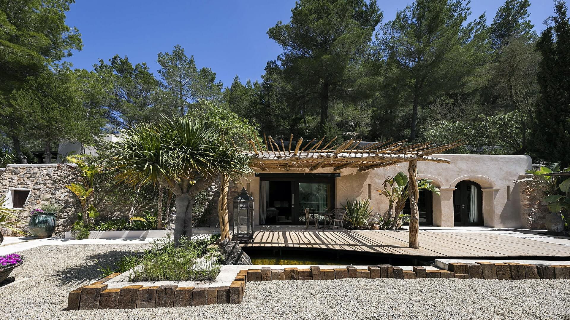 Uw acommodatie ligt in een rustige omgeving en in een bosrijk gebied. De woning bevindt zich op 2 km van het dorp "San Miguel", 6 km van het zandstrand "Playa del Puerto de San Miguel", 8 km van het dorp "Santa Gertrudis", 8 km van het zandstrand "Cala Benirrás", 12 km van het rotsstrand "Cala Xarraca", 19 km van het dorp "Ibiza centro", 27 km van de luchthaven.