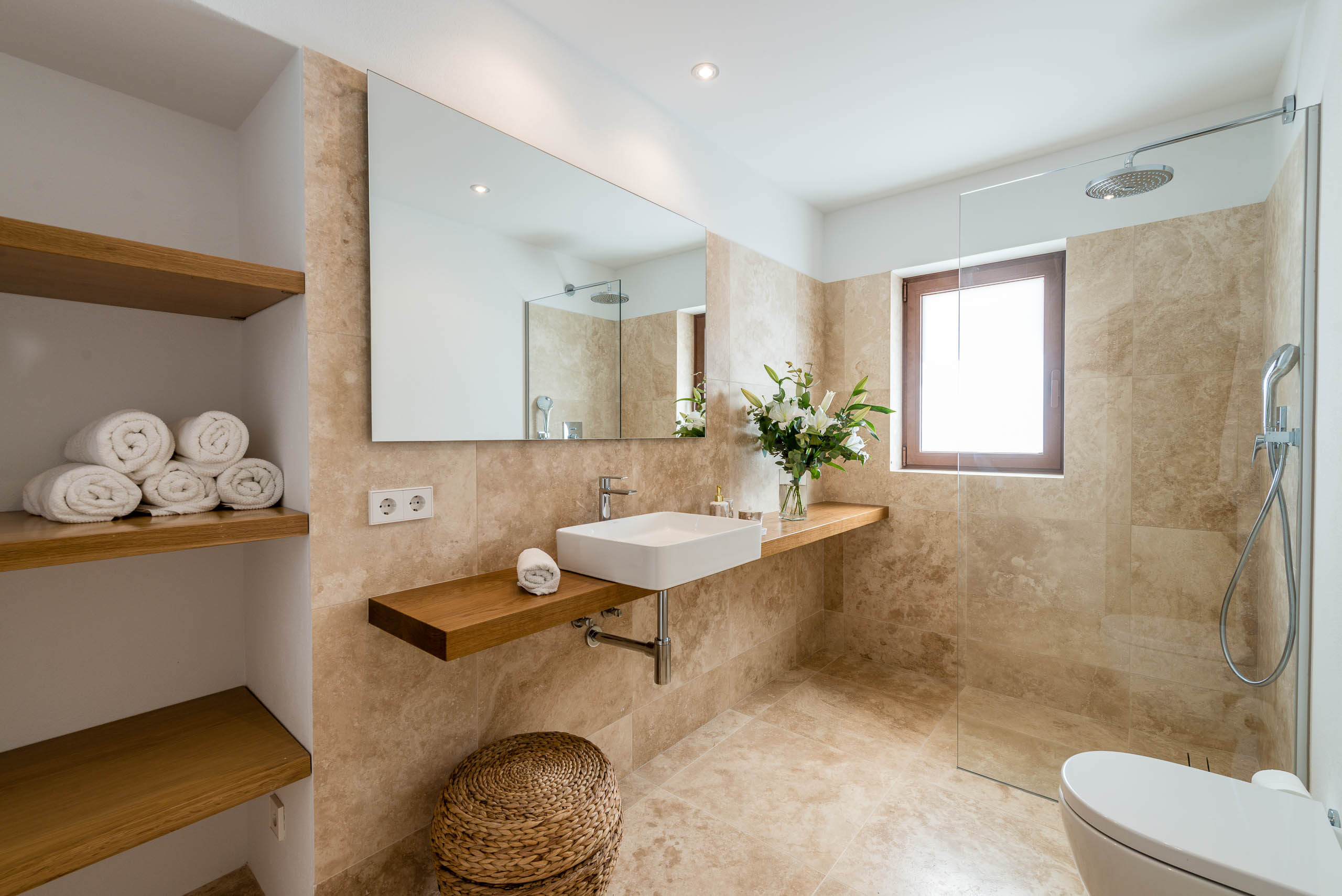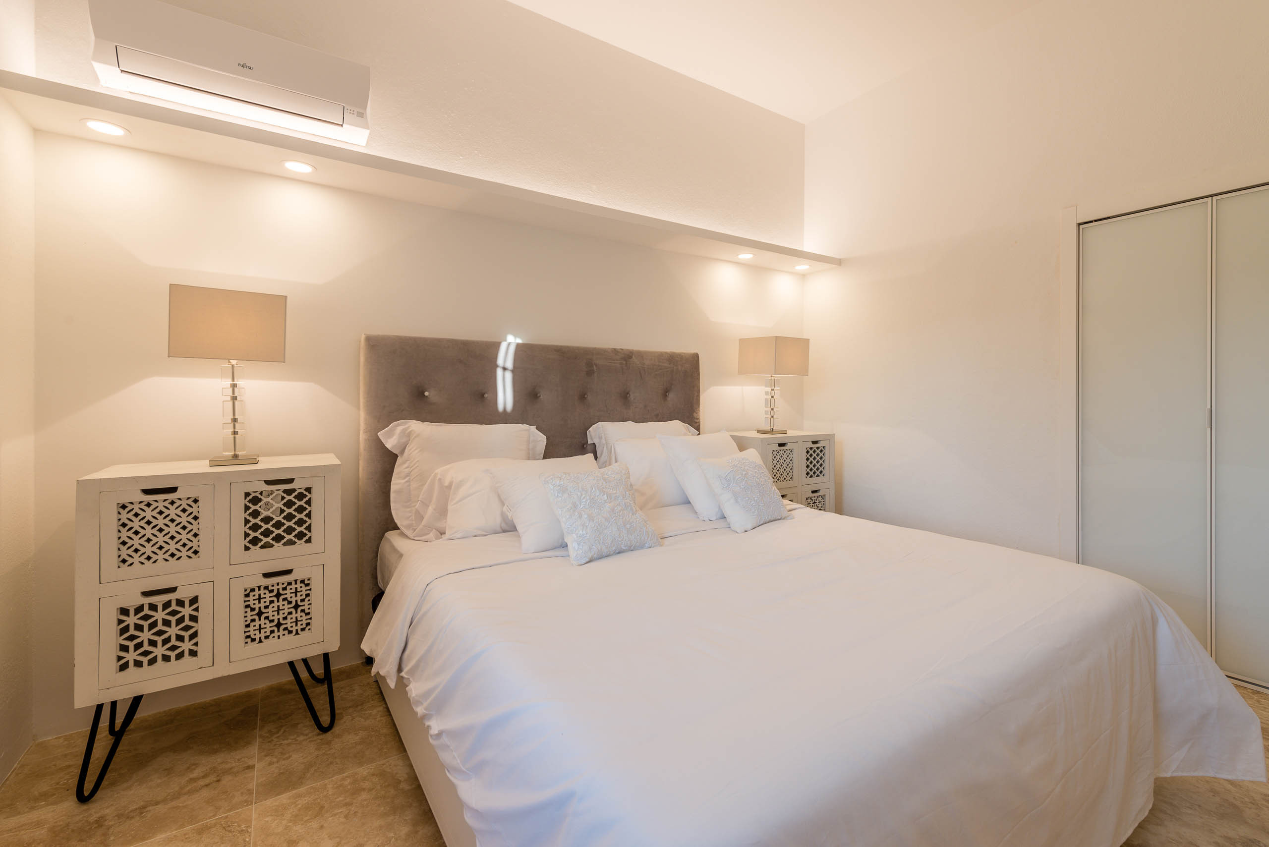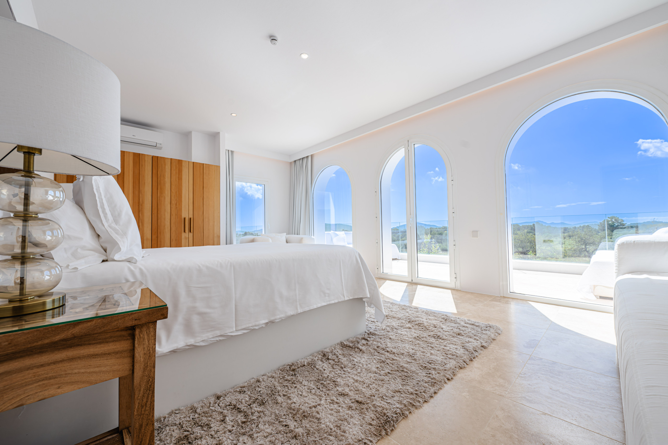 De bovenverdieping herbergt drie andere slaapkamers. Een ervan heeft een bed van 1,60 x 2,00 m en televisie. Een ander heeft een bed van 1,80 x 2,00 m, televisie en een en-suite badkamer met douche. En de laatste slaapkamer heeft ook een bed van 1,80 x 2,00 m. Twee van deze slaapkamers delen een extra badkamer met bad. Alle slaapkamers op deze verdieping hebben toegang tot privébalkonnen.