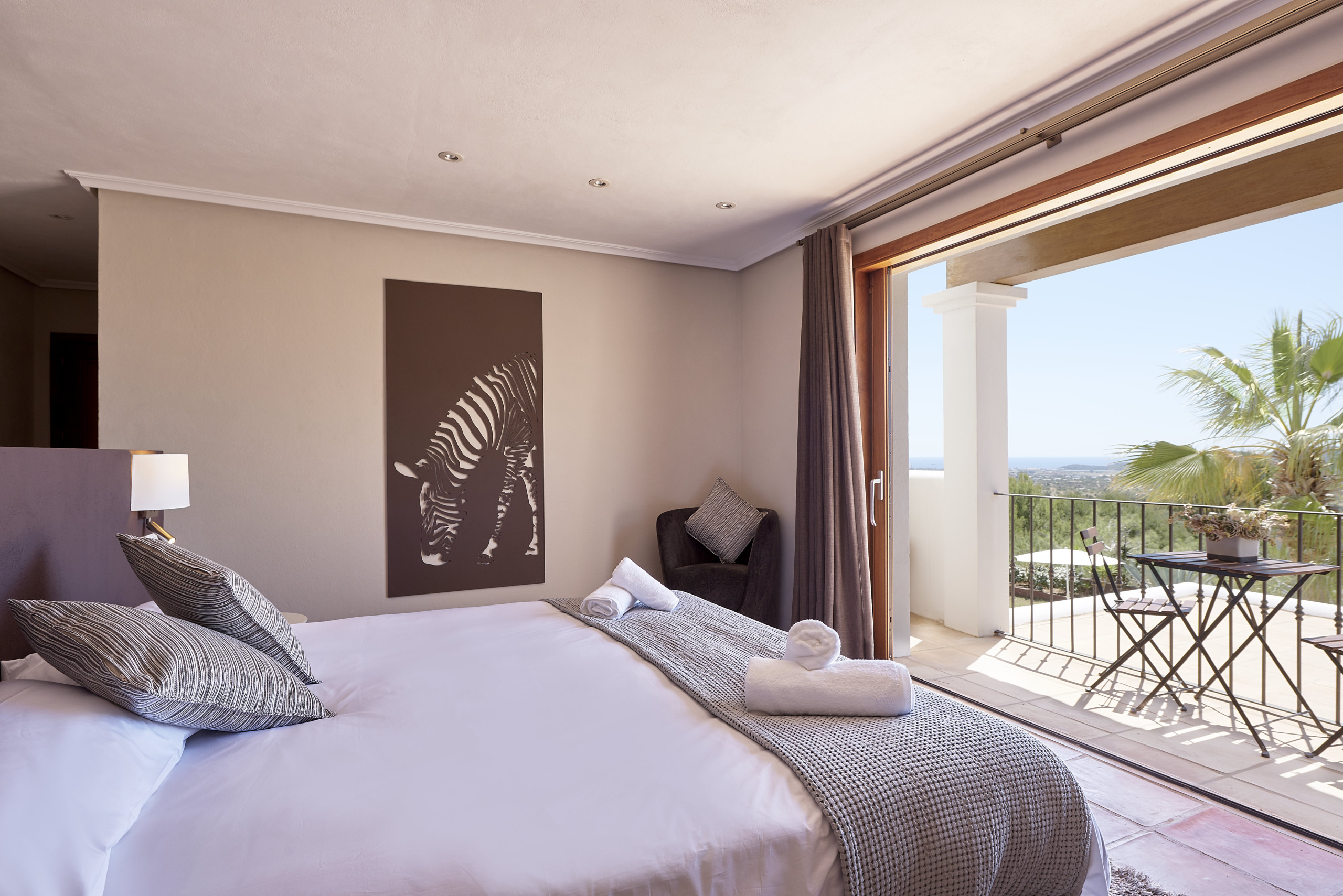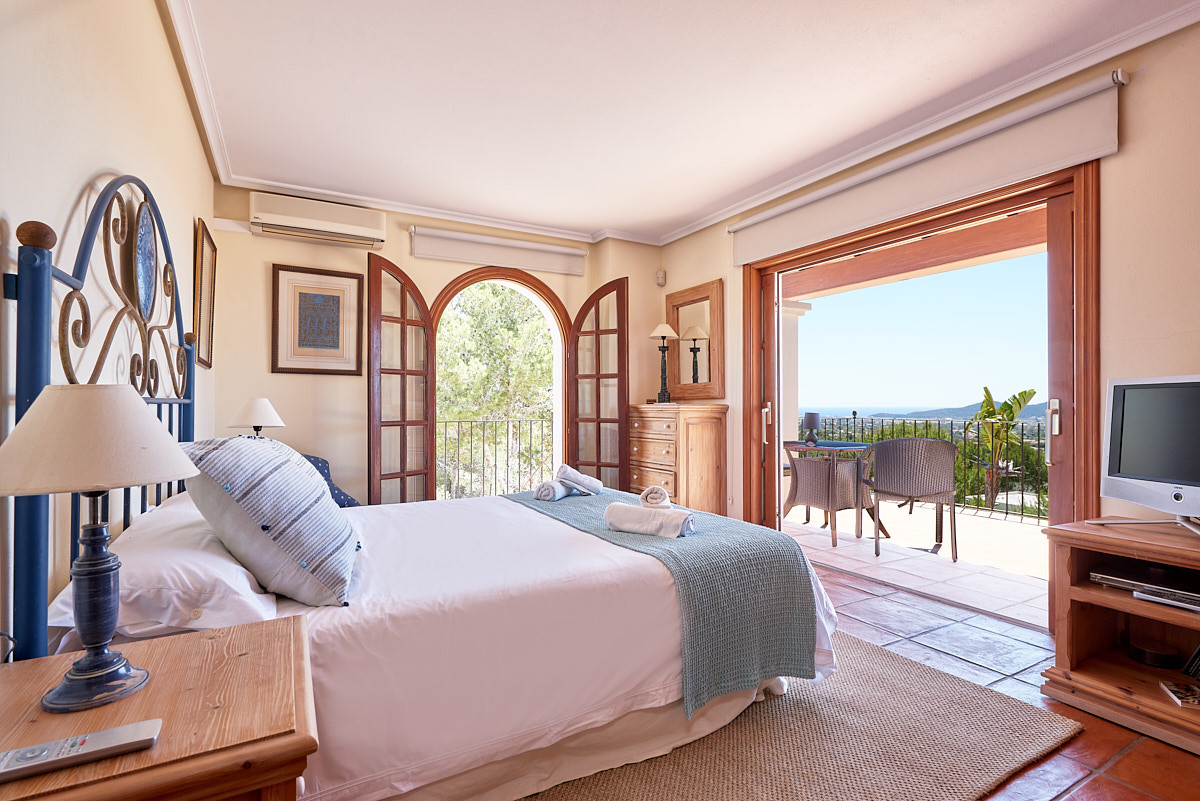 Op de eerste verdieping bevinden zich de andere twee slaapkamers, één met een tweepersoonsbed, tv en een terras met prachtige panoramische uitzichten op zee. En de hoofdsuite met een tweepersoonsbed, met een en-suite badkamer met bad en douche en een privéterras met eveneens indrukwekkende zeezichten.