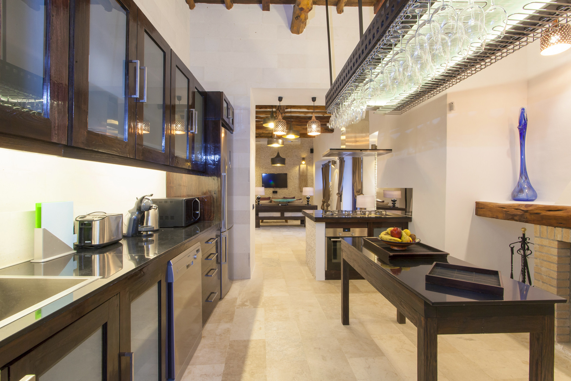 Het hoofdhuis beschikt over een woonkamer, een zeer goed uitgeruste open keuken en twee slaapkamers met een tweepersoonsbed met een eigen badkamer.